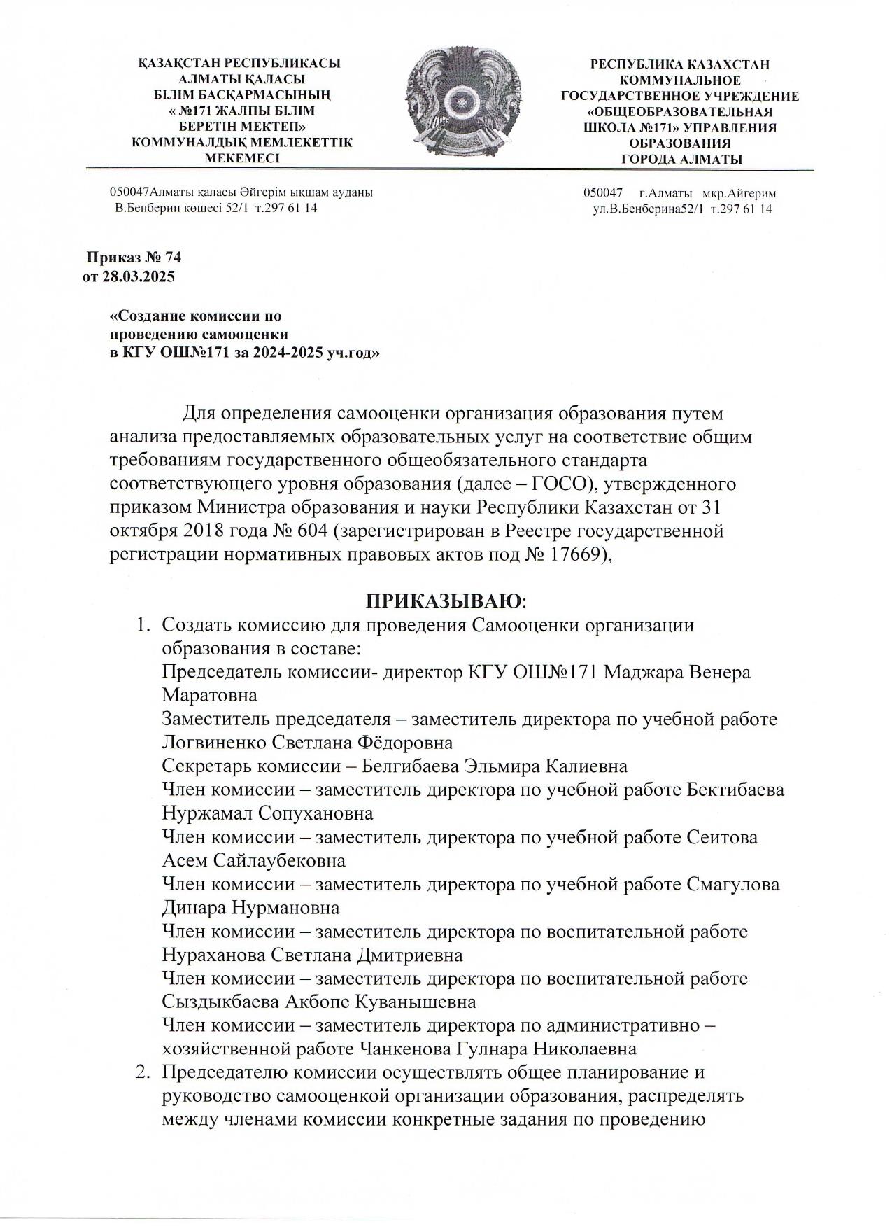 01 апрель 2025 0 1 2 3 4 5 Создание комиссии по проведению самооценки в КГУ ОШ №171 за 2024-2025 учебный год Осы беттің QR-коды:QR-код этой страницы: