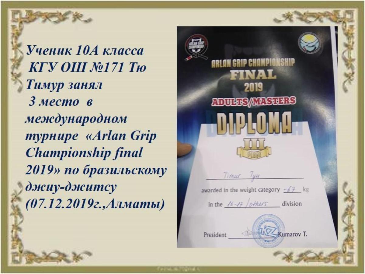 Ученица 2 «В» класса КГУ ОШ №171 (достижения)