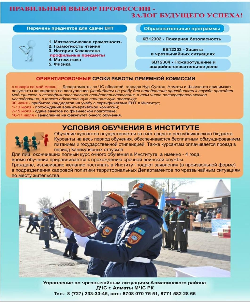 Вниманию выпускников общеобразовательных школ, лицеев Алатауского района г. Алматы! Мы приглашаем Вас стать студентом Кокшетауского технического института МЧС РК!