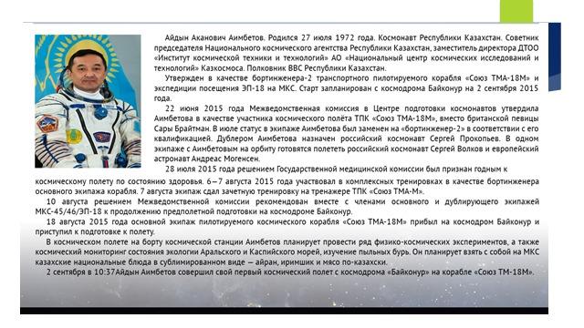 12.04.20 года в 1-11 классах КГУ ОШ 171 проведена информминутка на тему «День космонавтики». Нам есть чем гордиться! Нельзя забывать и о вкладе казахстанцев в освоении космоса. Мы можем гордиться своими героями космонавтики, которые были удостоены высоких званий и государственных наград. Всего на орбите побывали трое казахстанцев – Тохтар Аубакиров, Талгат Мусабаев и Айдын Аимбетов.