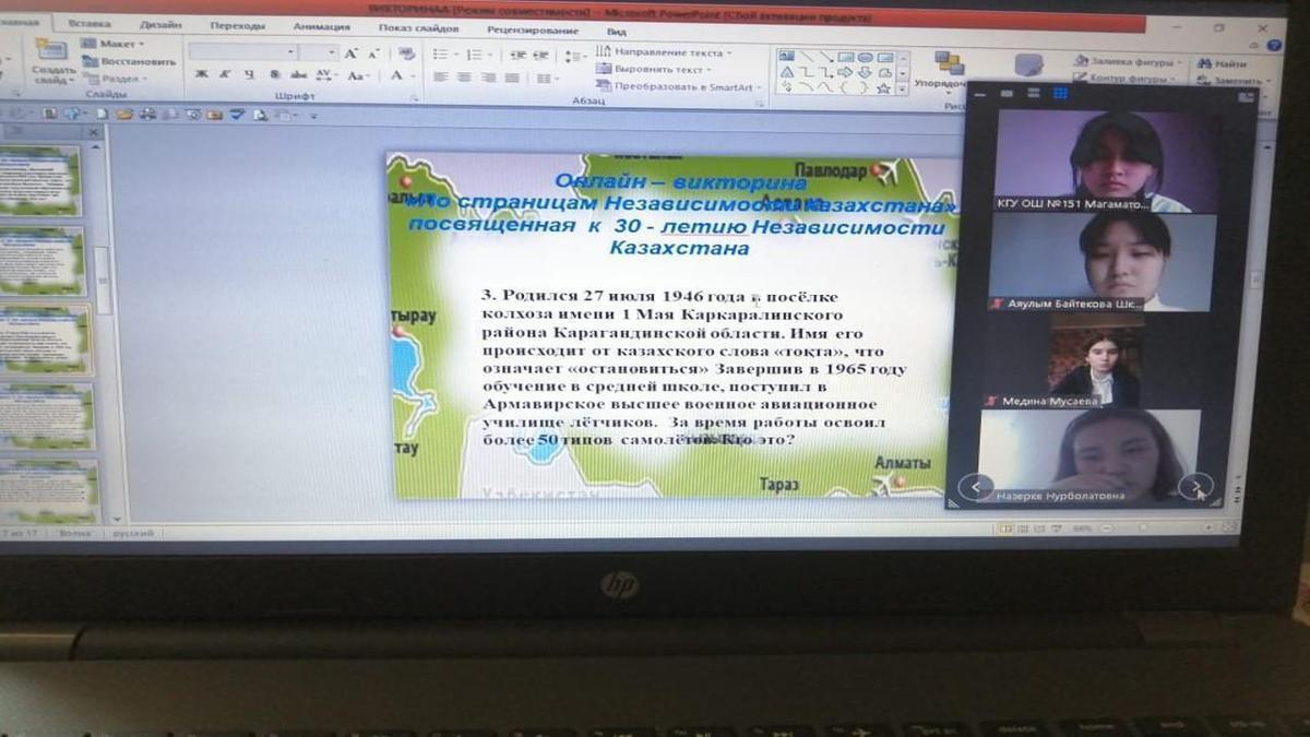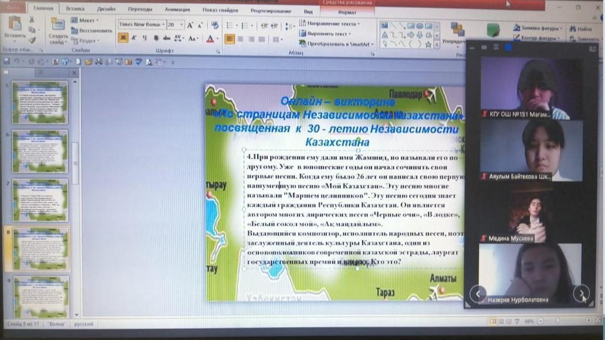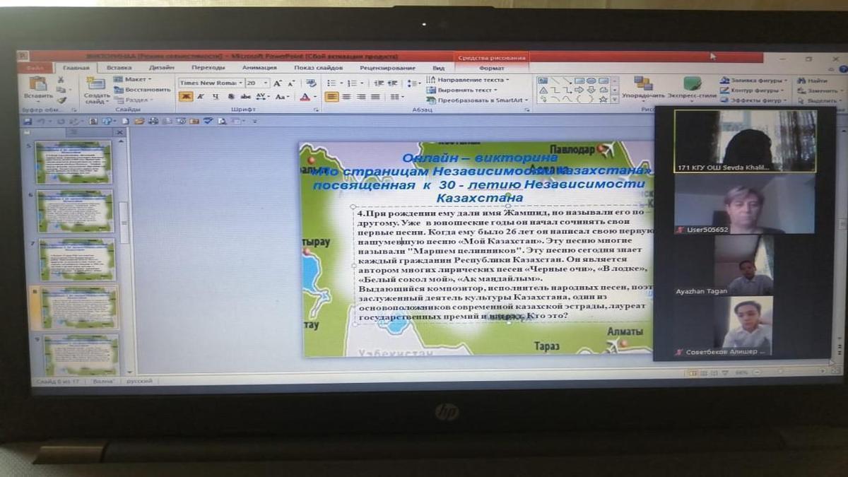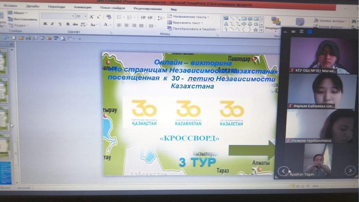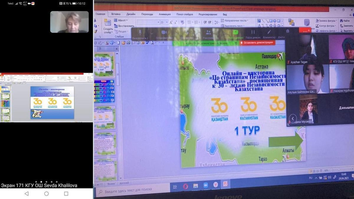 Алматы қаласы, Алатау ауданы білім бөлімі басшылығы мен №171 ЖББМ-тің ұйымдастыруымен Қазақстан Республикасының Тәуелсіздігіне 30 жыл толуына орай балалардың белсендігін көрсететін «Тәуелсіз Қазақстан беттерімен» атты қашықтықтан ұйымдастырылған аудандық викторина өтті.