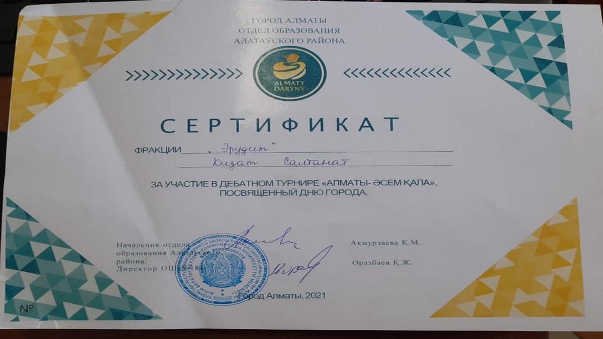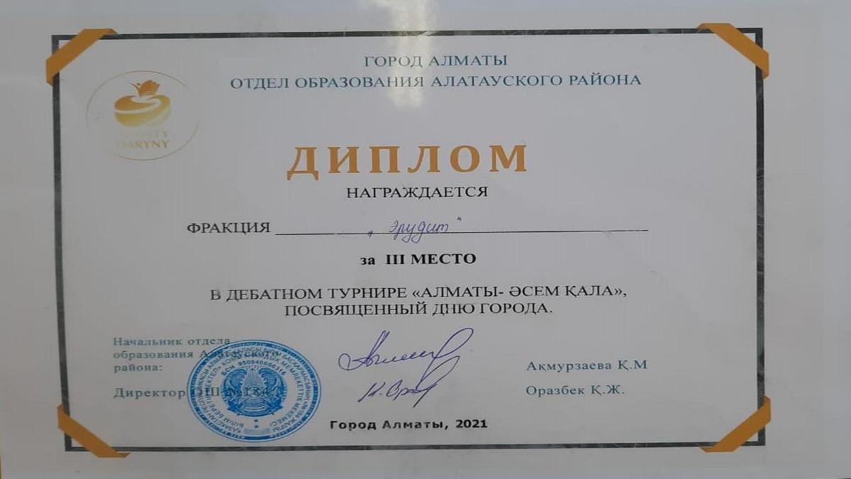 16 сентябрь 2021 0 1 2 3 4 5 3-место в районном дебатном турнире «Алматы – әсем қала» Дебатный клуб КГУ ОШ №171 занял 3-место в районном дебатном турнире «Алматы – әсем қала», посвященный Дню города. Руководитель клуба – Кизат Салтанат Кизатовна. Осы беттің QR-коды:QR-код этой страницы: