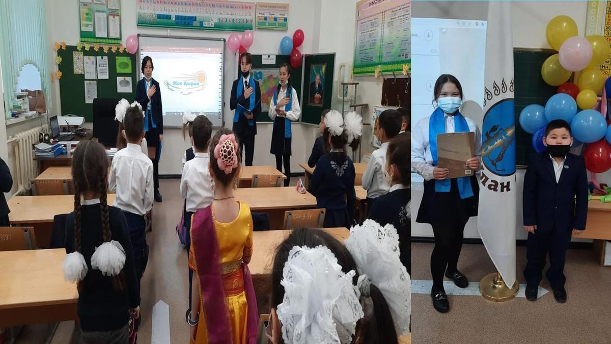 30 ноября жаскырановцами стали самые юные учащиеся нашей школы – наши первоклассники. Право вручить учащимся значки «Жас Қыран» было предоставлено членам ученического самоуправления, ребятам, которые принимают активное участие во всех школьных делах.