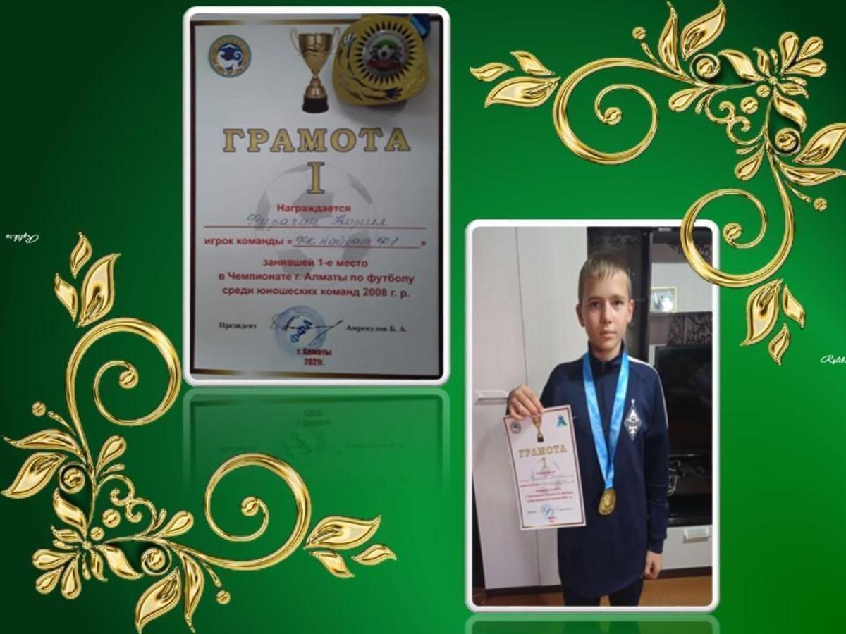 17 декабрь 2021 0 1 2 3 4 5 Фирягин Кирилл награжден грамотой за 1-место Чемпионат г.Алматы по футболу.Ученик 7 А класса Фирягин Кирилл награжден грамотой за 1-место. Осы беттің QR-коды:QR-код этой страницы: