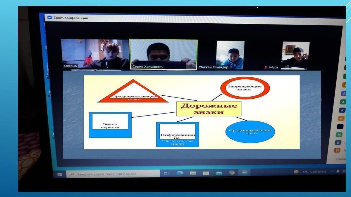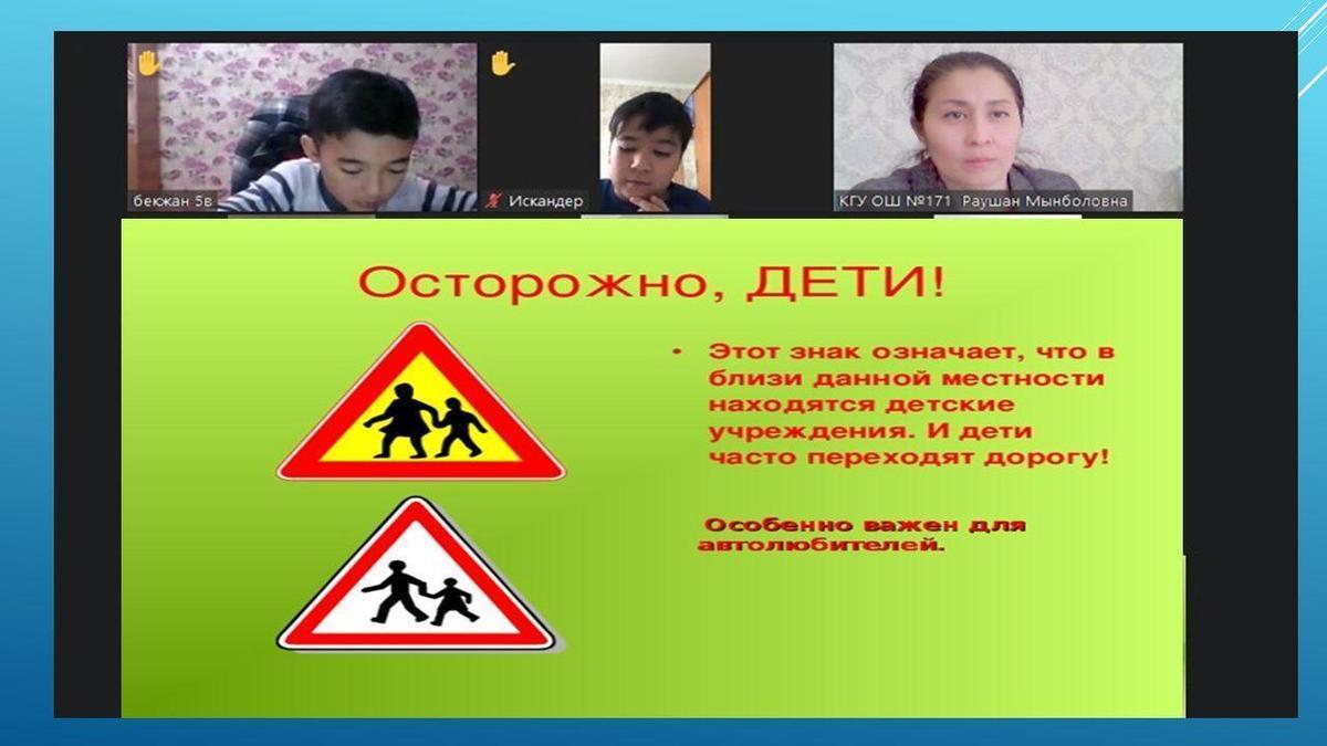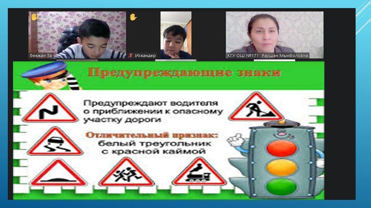 На уроке рассматривались 8 групп дорожных знаков: предупреждающие знаки, знаки приоритета, запрещающие знаки, предписывающие знаки, знаки особого предписания, информационно-указательные знаки, знаки дополнительной информации. Учащимся предложены задания на определение «Дорожные знаки».