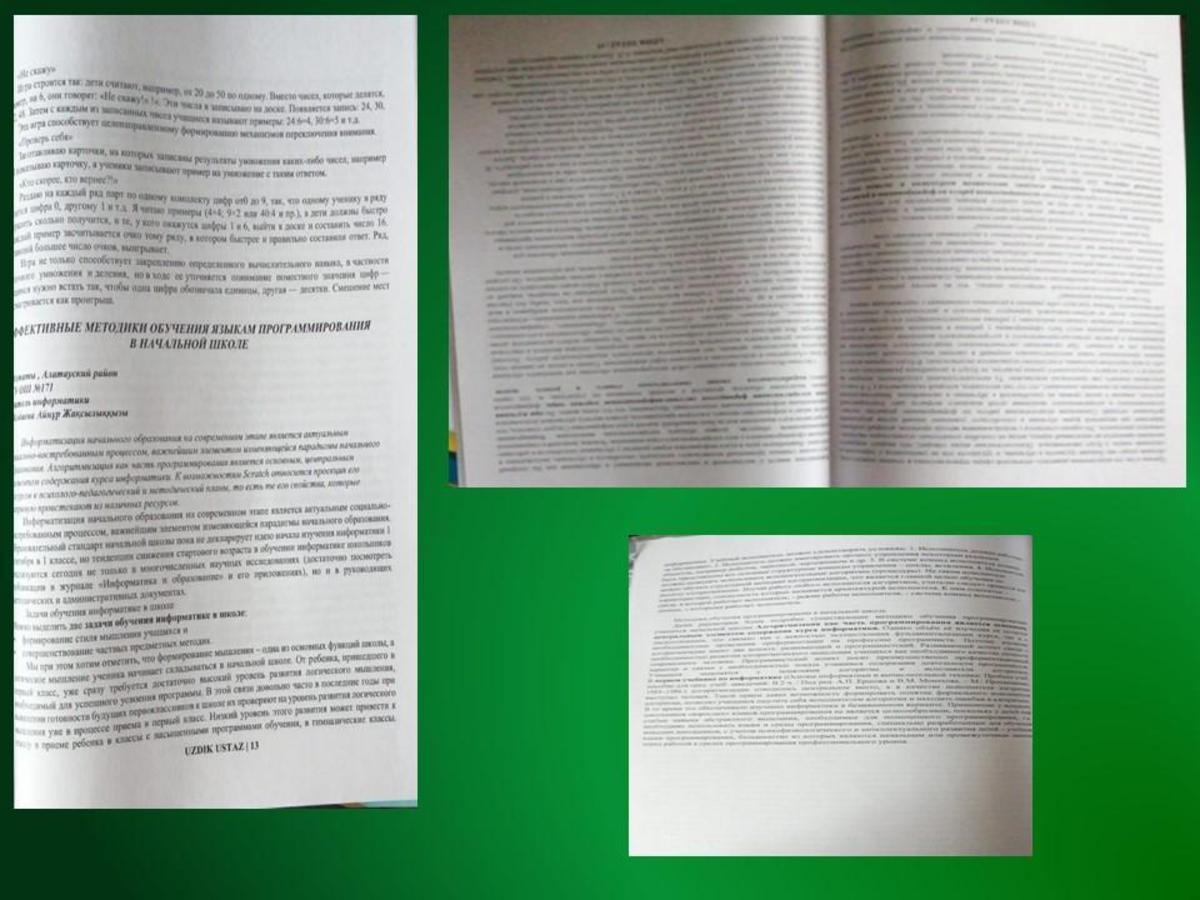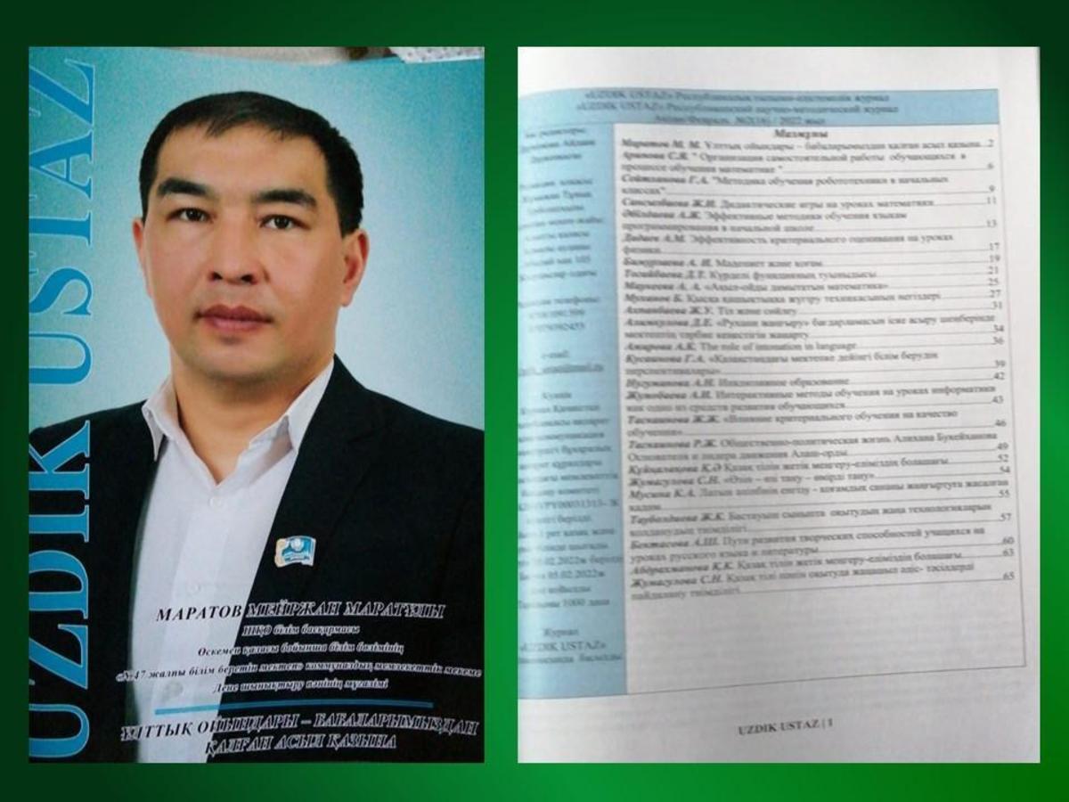 «UZDIK USTAZ» республикалық ғылыми-әдістемелік журналына (ақпан, 2022 жыл) «Эффективные методики обучения языкам программирования в начальной школе» тақырыбында мақала жариялап, білім жүйесіне үлес қосқаны үшін Әділдаева Айнұр Жақсылыққызы марапатталды.