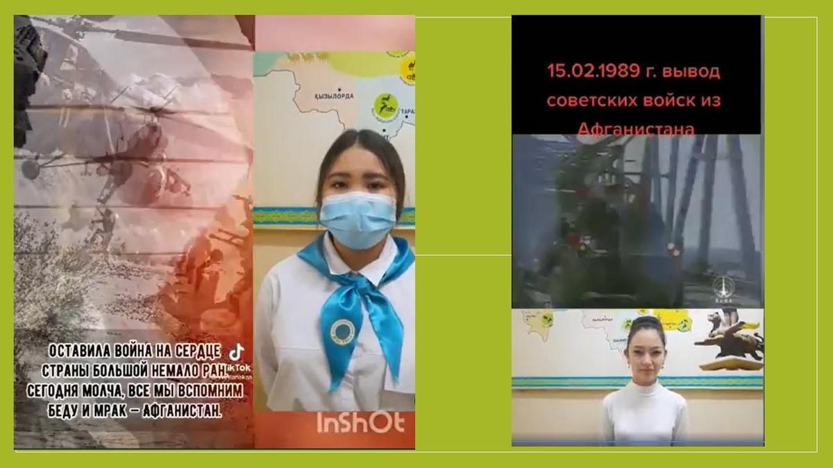 Кеңес әскерлерінің Ауған жерінен шығарылғанына 33 жыл толуына байланысты "Мектеп парламенті","Өзін-өзі басқару" ұйымының оқушылары "Ауған соғыс ардагерлеріне тағызым" атты челленджін жалғастыруда.