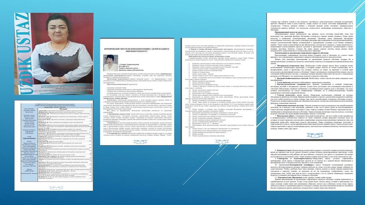 «UZDIK USTAZ» республикалық ғылыми-әдістемелік журналына (наурыз №3/18/, 2022 жыл) «Формирование читательской компетенции у детей младшего школьного возраста» тақырыбында мақала жариялап, білім жүйесіне үлес қосқаны үшін Оразбекова Айткуль Жолдасбековна марапатталды.