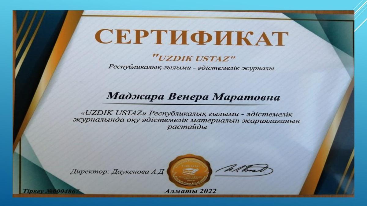 06 апрель 2022 0 1 2 3 4 5 Республикалық ғылыми-әдістемелік журналда жарияланды Маджара Венера Маратовна «UZDIK USTAZ» Республикалық ғылыми-әдістемелік журналында оқу әдістемелік материалын жариялады. Осы беттің QR-коды:QR-код этой страницы: