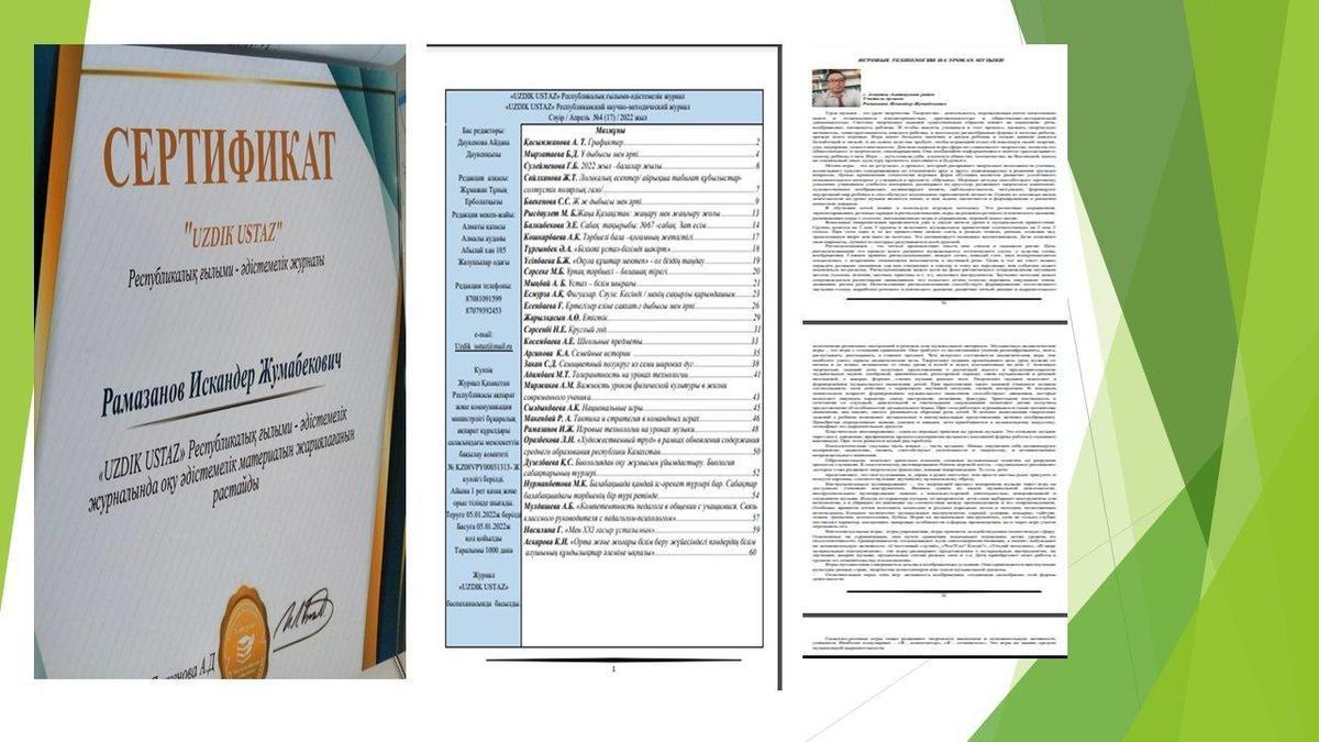 26 апрель 2022 0 1 2 3 4 5 Рамазанов Искандер Жумабековичке сертификат берілді «UZDIK USTAZ» республикалық ғылыми-әдістемелік журналында (сәүір №4/17/, 2022 жыл) оқу-әдістемелік материалын жариялағаны үшін Рамазанов Искандер Жумабековичке сертификат берілді. Осы беттің QR-коды:QR-код этой страницы: