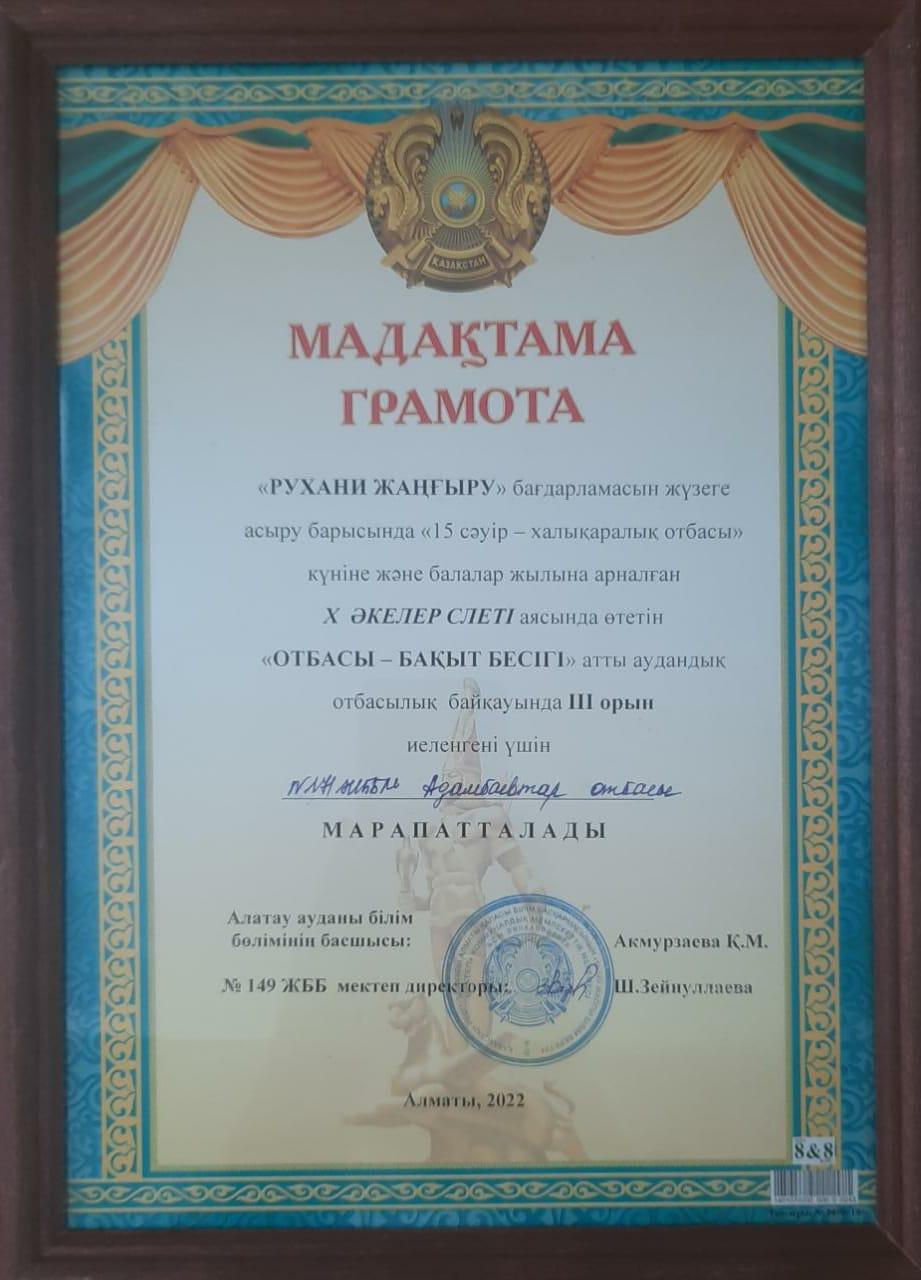 04 май 2022 0 1 2 3 4 5 "Отбасы - бақыт бесігі" аудандық отбасылық байқауында жүлдегер атанды "Отбасы - бақыт бесігі" атты аудандық отбасылық байқауында ІІІ орын алғаны үшін Адамбаевтар отбасы марапатталды. Осы беттің QR-коды:QR-код этой страницы: