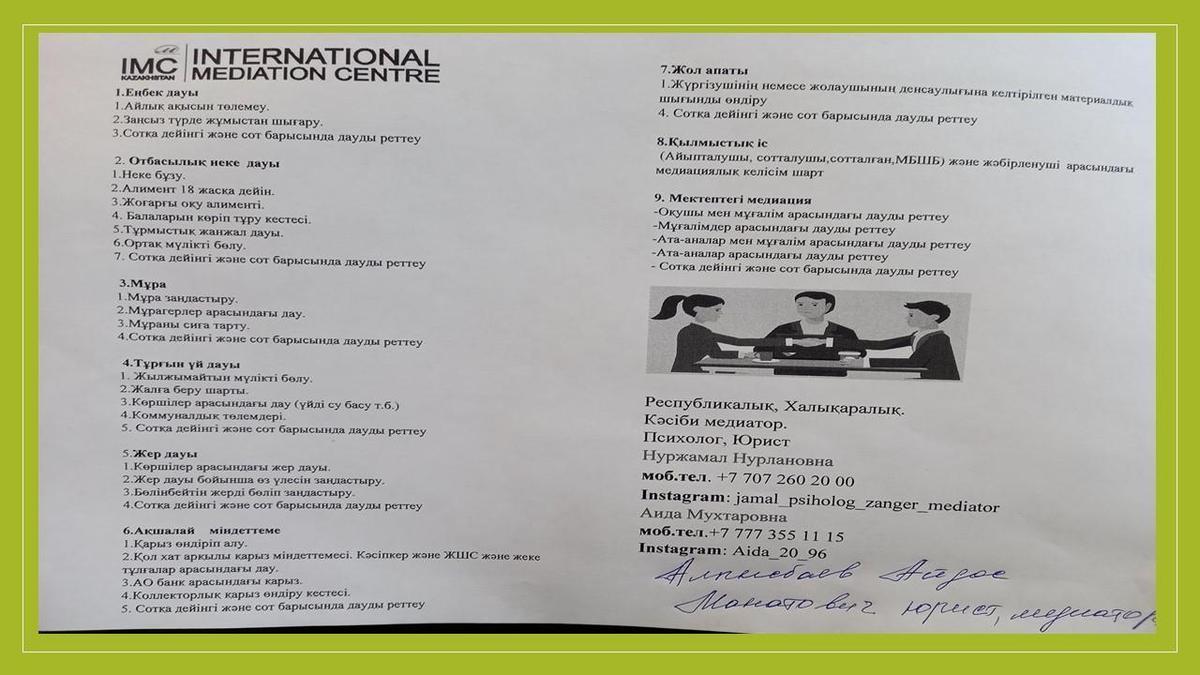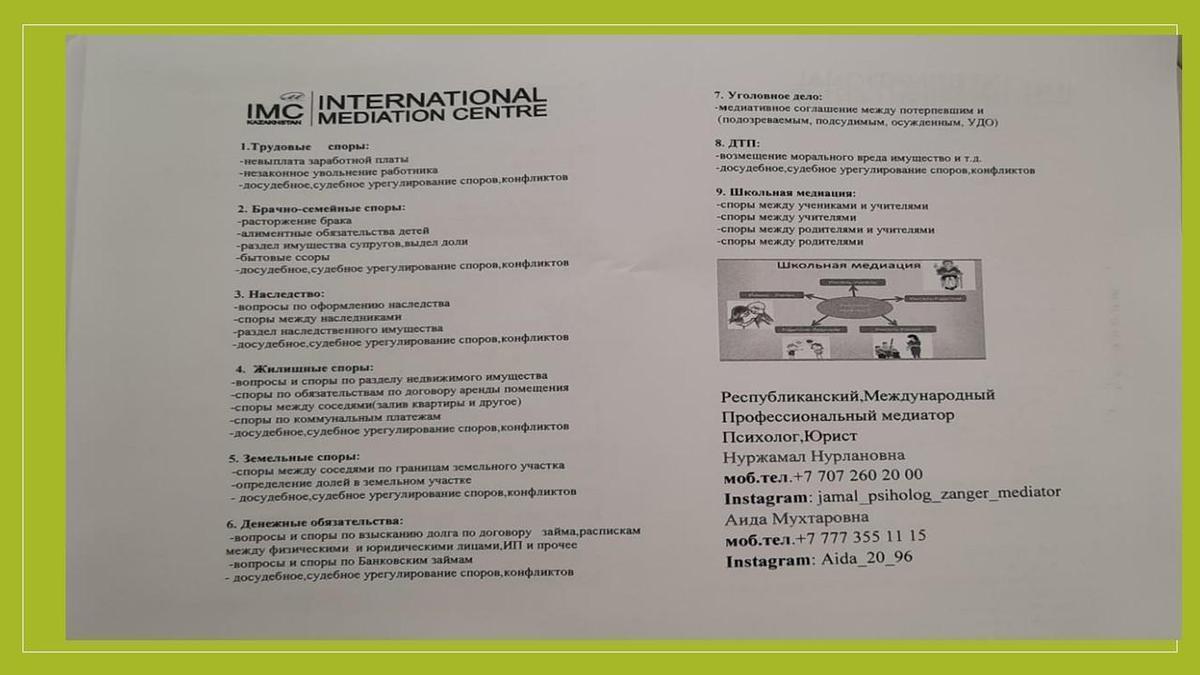 Республикалық, Халықаралық кәсіби медиатор орталығының психолог, заңгер мамандары Нұржамал Нурлановна, Аида Мухтаровна,