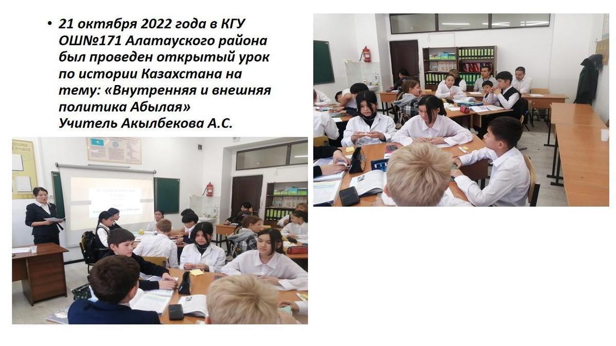 21 октябрь 2022 0 1 2 3 4 5 Проведен открытый урок по истории Казахстана Проведен открытый урок по истории Казахстана на тему: «Внутренняя и внешняя политика Абылая». Учитель Акылбекова А.С. Осы беттің QR-коды:QR-код этой страницы: