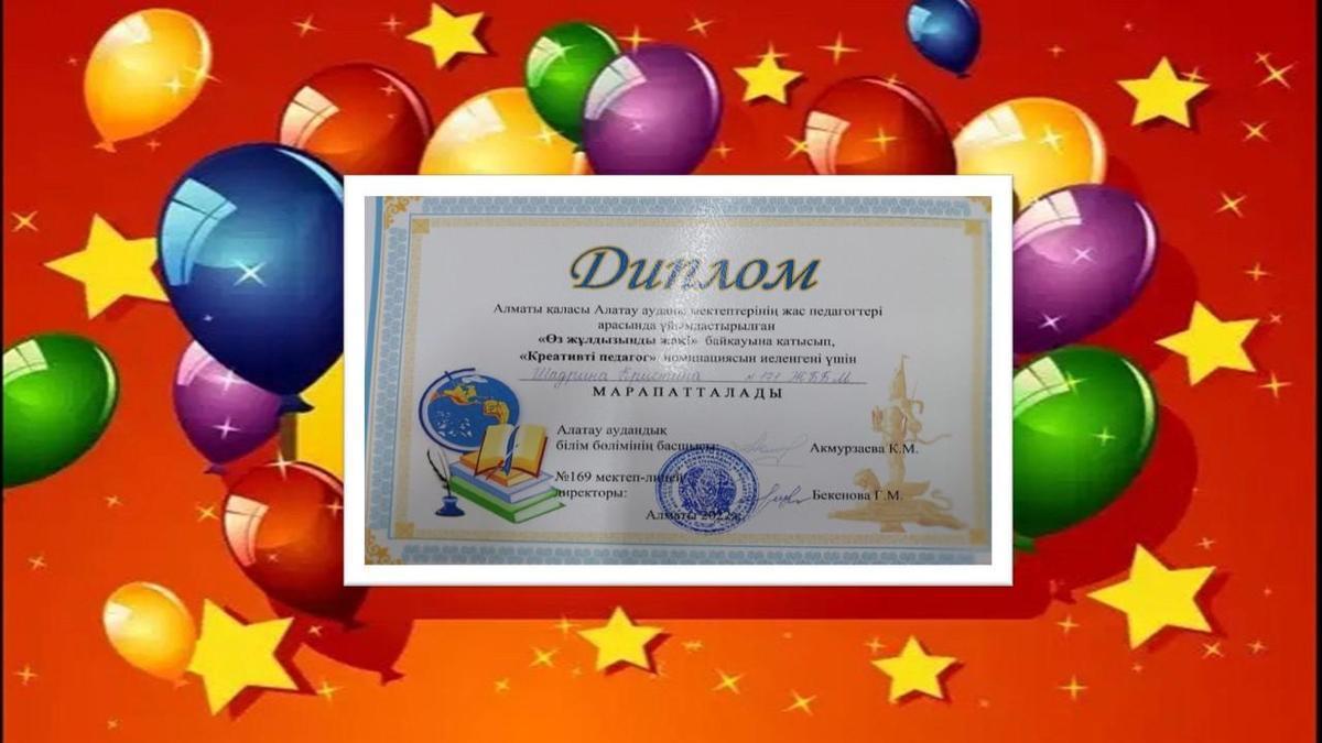 Среди молодых педагогов школ Алатауского района г. Алматы организовано мероприятие "Өз жұлдызыңды жақ!". Приняв участие в конкурсе Шадрина Кристина была признана в номинации «креативный педагог».