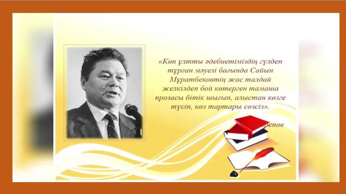 К 85 - летию С. Муратбекова был организован круглый стол по роману "Жабайы алма". В школьной библиотеке был организован круглый стол по роману «Жабайы алма», на котором учителями казахского языка и литературы были награждены произведения, посвященные казахской литературе, лауреатом Государственной премии Сайын Муратбековым. Мероприятие открыла Жанерке Пернешева, которая рассказала о биографии и произведениях писателя. Роман С. Муратбекова «Жабайы алма» обсуждался среди педагогов.Также заведующая библиотекой Аимбекова Б. Т. презентовала книжную выставку, посвященную писателю. Наряду с произведениями писателя на выставке были представлены периодические издания о его жизни и творчестве. Сайын Муратбеков - талантливый писатель конца 50-х, начала 60-х годов прошлого века, пришедший на литературу со своей подписью. За роман «Жабайы алма» получил Государственную премию.