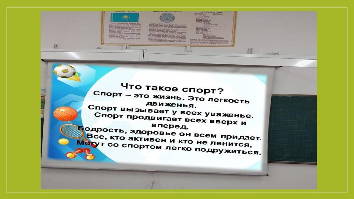 4-сыныптар арасында "Спорт сен өмірсің" тақырыбында әңгіме, 5-сыныптар арасында "Денсаулық сақтаудың басты жолы - спорт" тақырыбында әңгіме өткізілді.