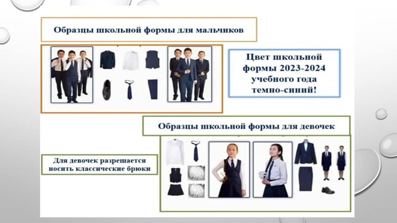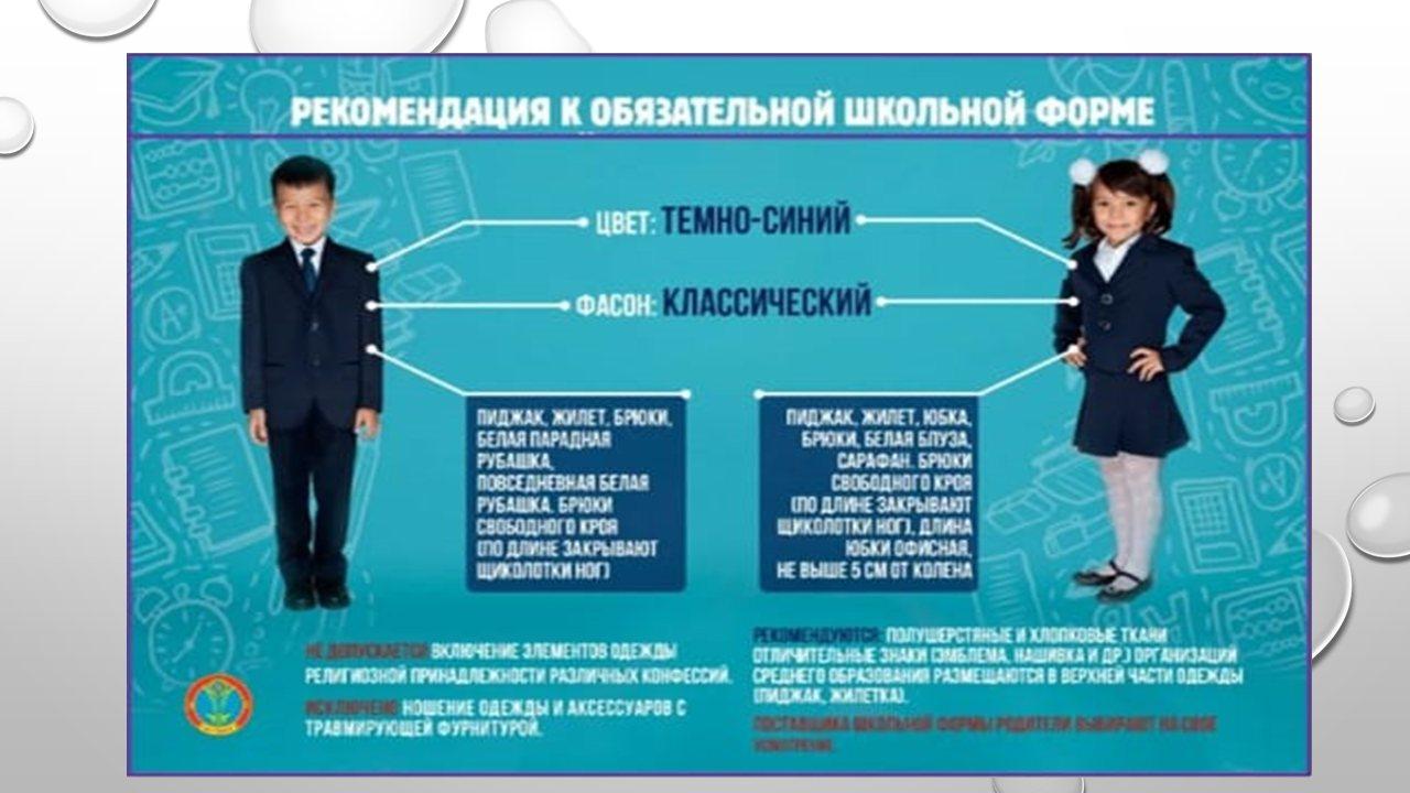 Құрметті ата-аналар! Мектеп формасына қойылатын талаптар туралы өздеріңізге кең көлемде тағы да ақпарат беруді жөн санап отырмыз.