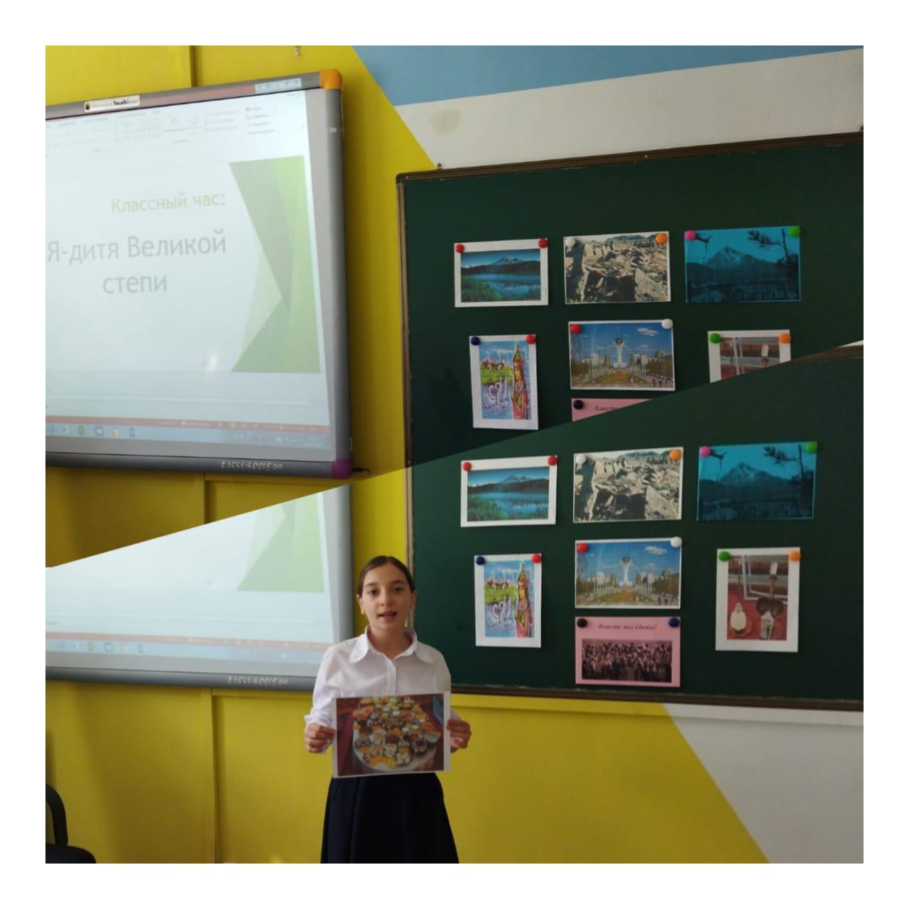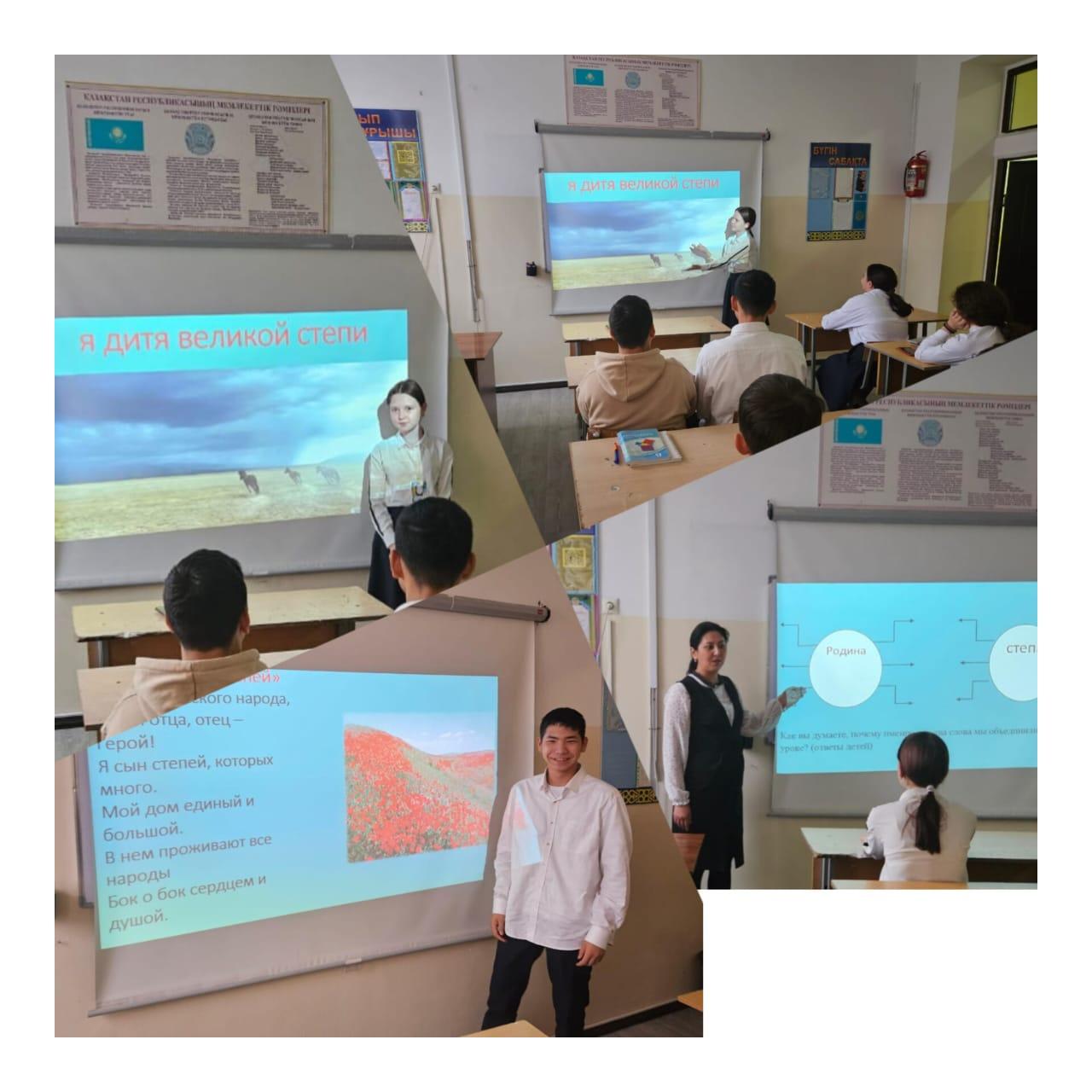 7 ноября среди 5-9 классов проведен классный час классе на тему “Ұлы дала перзентімін ( Я-дитя-великой степи”) о биографии, образовании, участии в общественной жизни, трудах, казахского писателя, публициста, педагога, одного из основателей новой казахской литературы Мағжана Жұмабаева (1893-1938г.).
