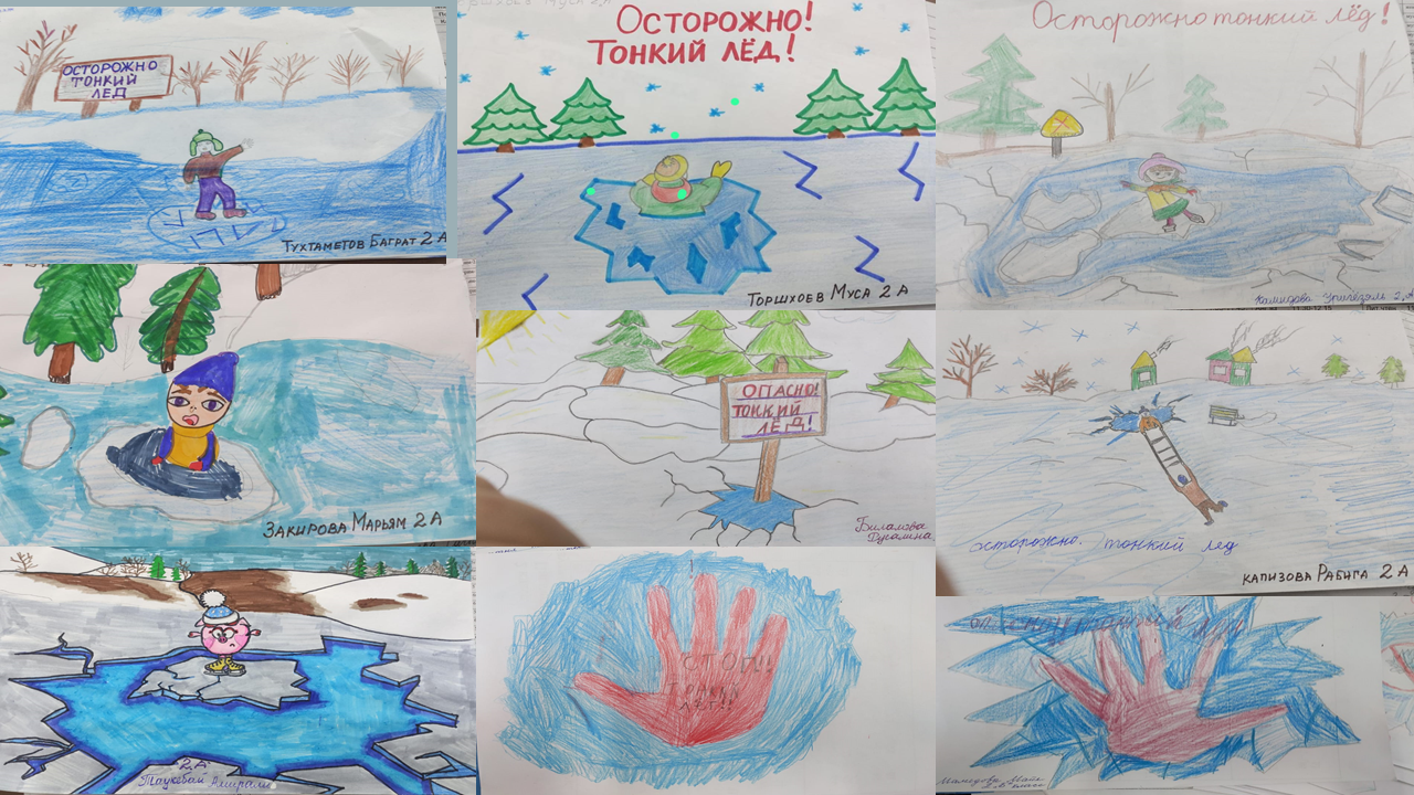 В целях воспитания у детей культуры поведения на водных объектах в зимний период среди 1-4 классов проходил конкурс рисунка по тематике: «Осторожно, тонкий лёд!».
