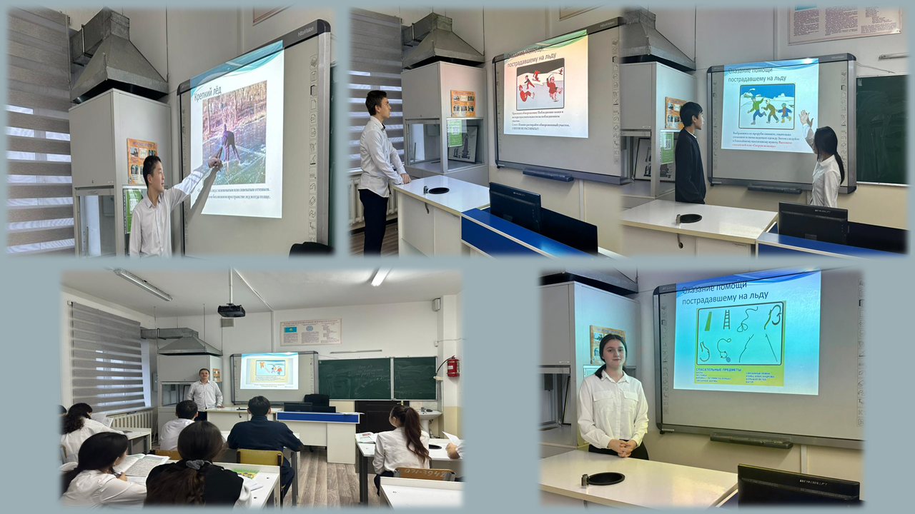 Жазатайым оқиғалардың алдын алу мақсатында 1-11 сыныптар арасында «Қыс мезгіліндегі судағы қауіпсіздіктің негізгі ережелері» атты сынып сағаты өткізілді.