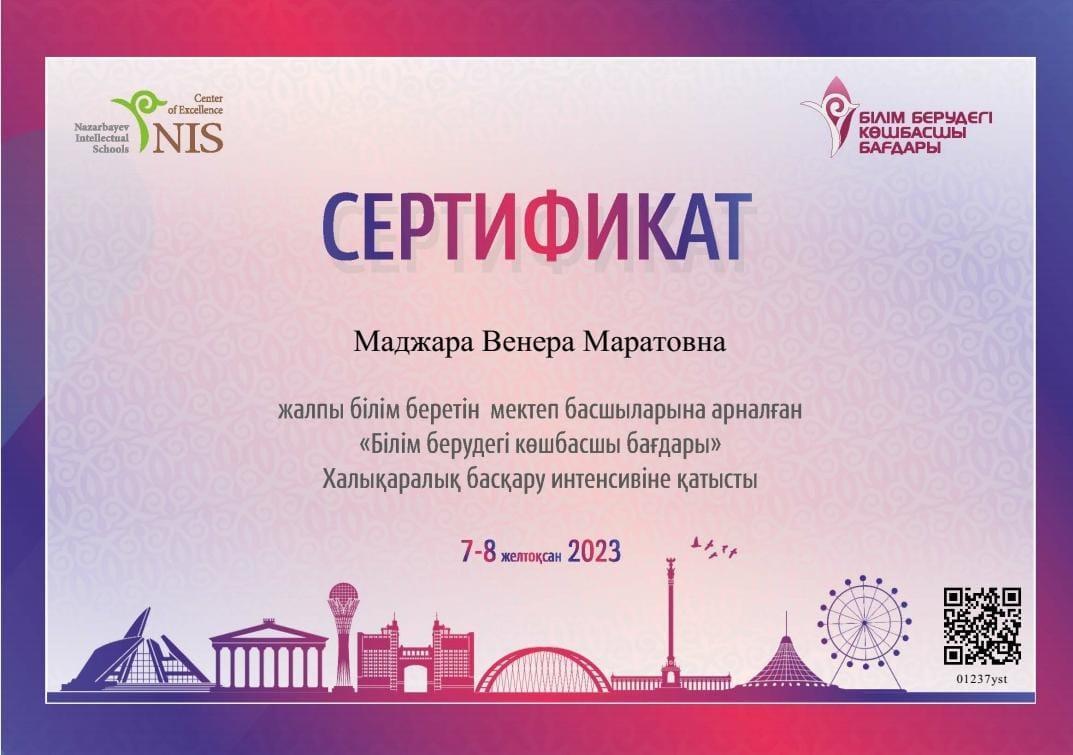 12 декабрь 2023 0 1 2 3 4 5 "Білім берудегі көшбасшы бағдары" Жалпы білім беретін мектеп басшыларына арналған "Білім берудегі көшбасшы бағдары"Халықаралық басқару интенсивіне қатысқаны үшін №171 мектеп мұғалімі Маджара Венера Маратовна марапатталды Осы беттің QR-коды:QR-код этой страницы: