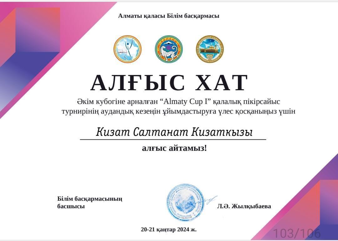 29 январь 2024 0 1 2 3 4 5 Әкім кубогіне арналған “Almaty CupI”қалалық пікірсайыс турнирі өтті Әкім кубогіне арналған “Almaty CupI”қалалық пікірсайыс турнирінің аудандық кезеңіне ұйымдастыруға қосқан үлесі үшін Кизатова Салтанат Кизатовнаға алгыс білдіремыз Осы беттің QR-коды:QR-код этой страницы: