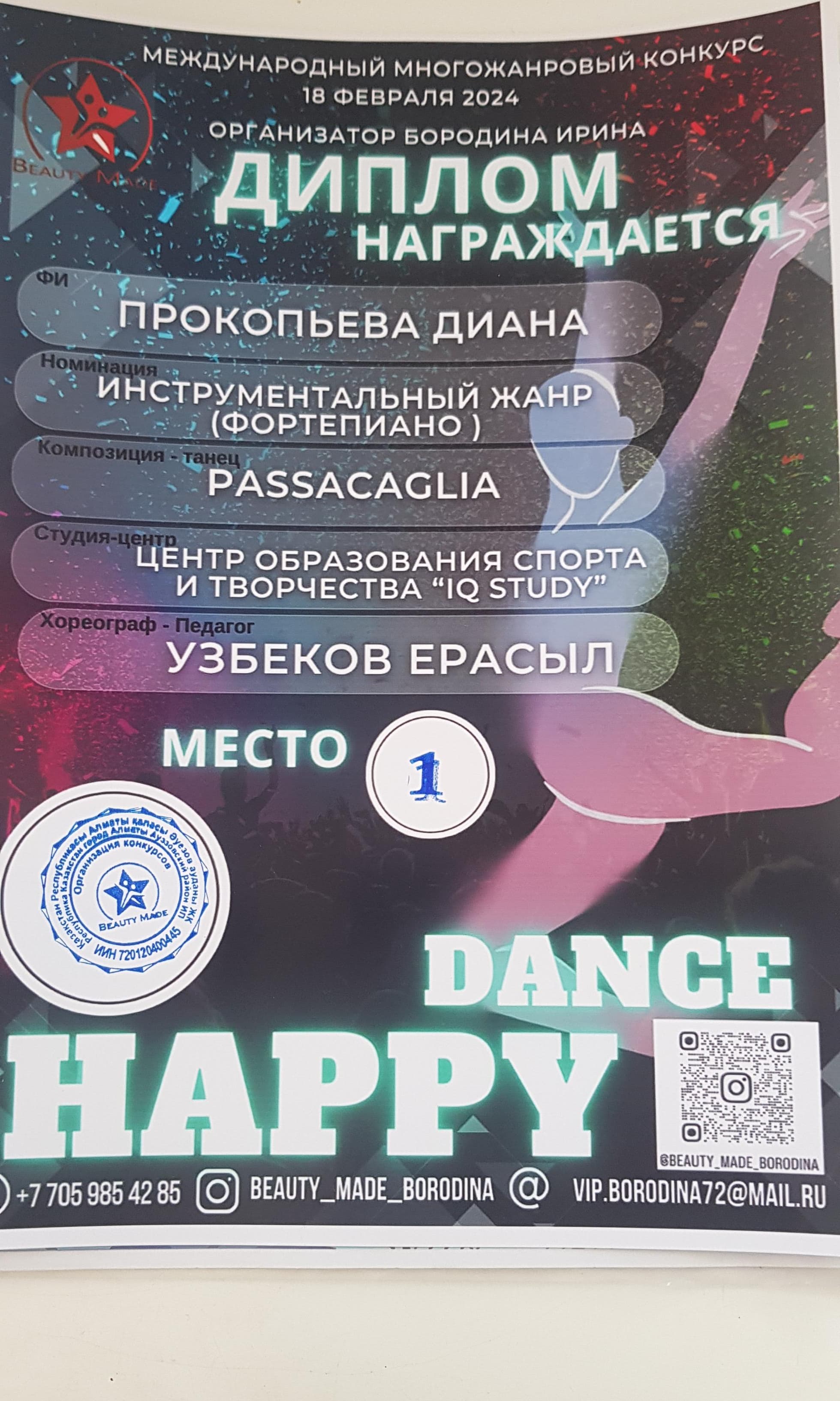 22 февраль 2024 0 1 2 3 4 5 Халықаралық көпжанрлық конкурсында Прокопьева Диана 1 орынмен марапатталды Халықаралық көпжанрлық конкурсында Прокопьева Диана 1 орынмен марапатталды Осы беттің QR-коды:QR-код этой страницы: