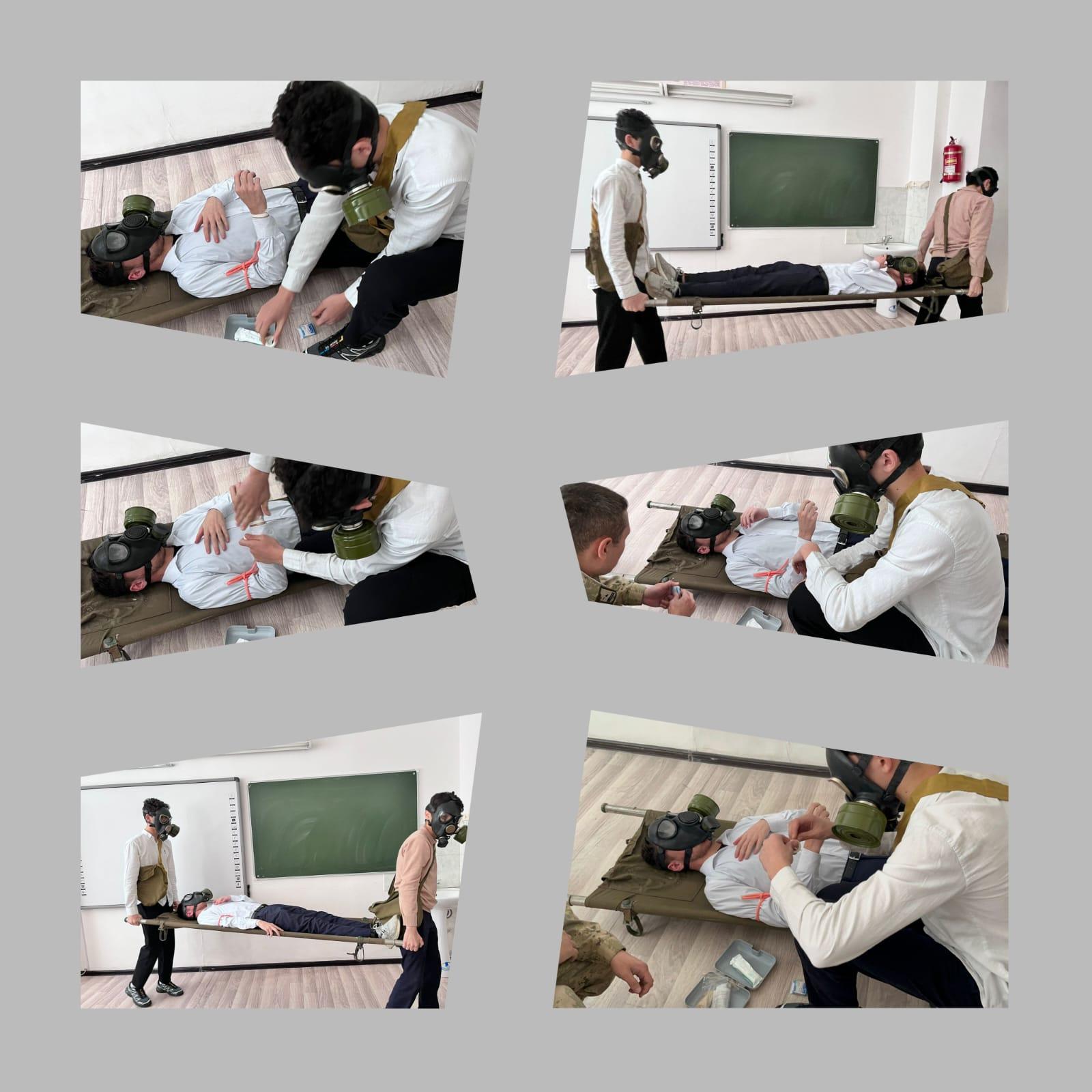 В КГУ ОШ №171 учитель НВП Жумакулов Е.Б. среди 9-10 классов провел спортивные эстафеты и игры (с элементами комплекса ГО, одевание противогазов, перенос пострадавших, оказание первой медицинской помощи, использование первичных средств пожаротушения).