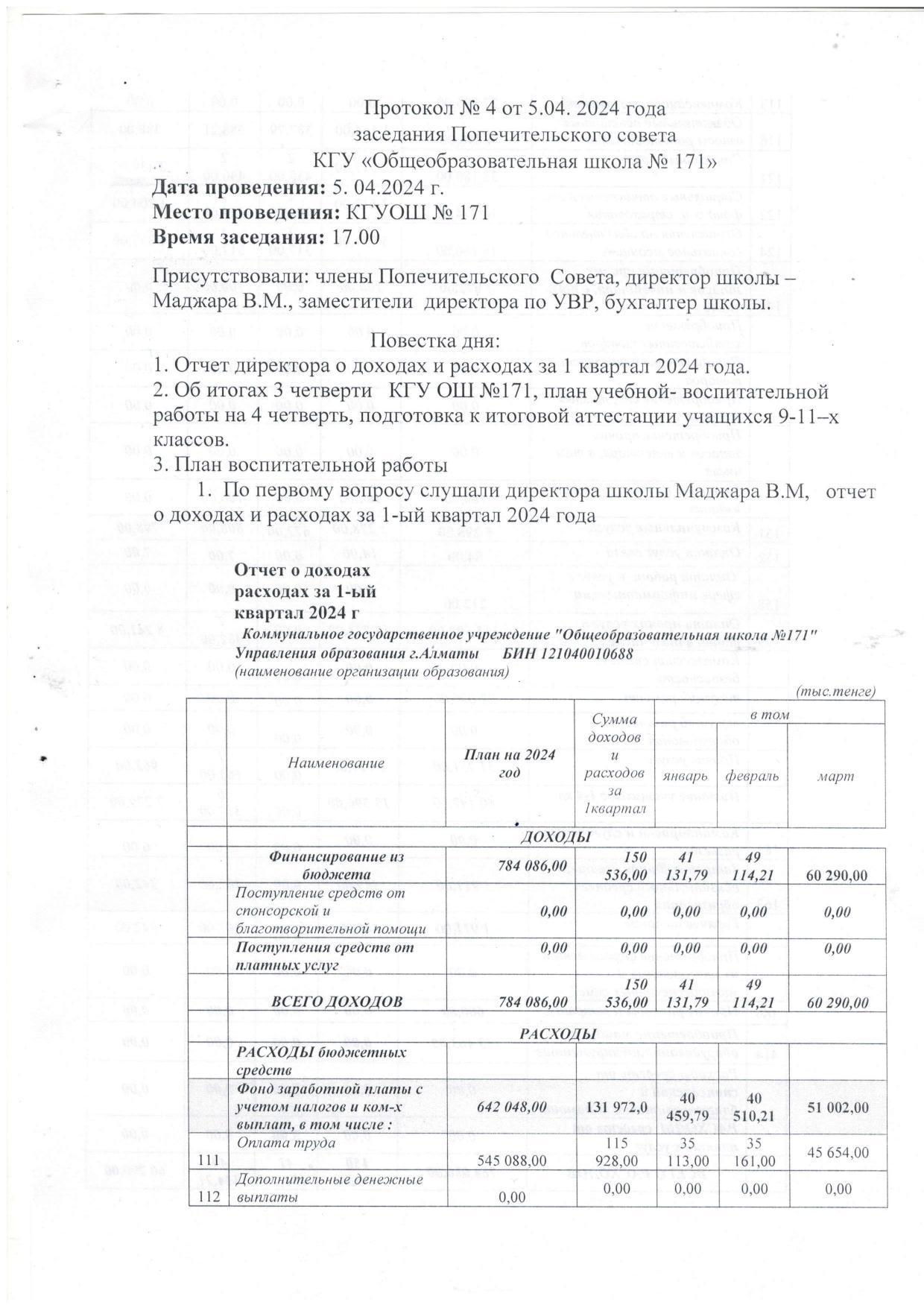 05 апрель 2024 0 1 2 3 4 5 Протокол №4 от 05.04.2024 года заседания Попечительского совета КГУ "Общеобразовательная школа №171" Осы беттің QR-коды:QR-код этой страницы:
