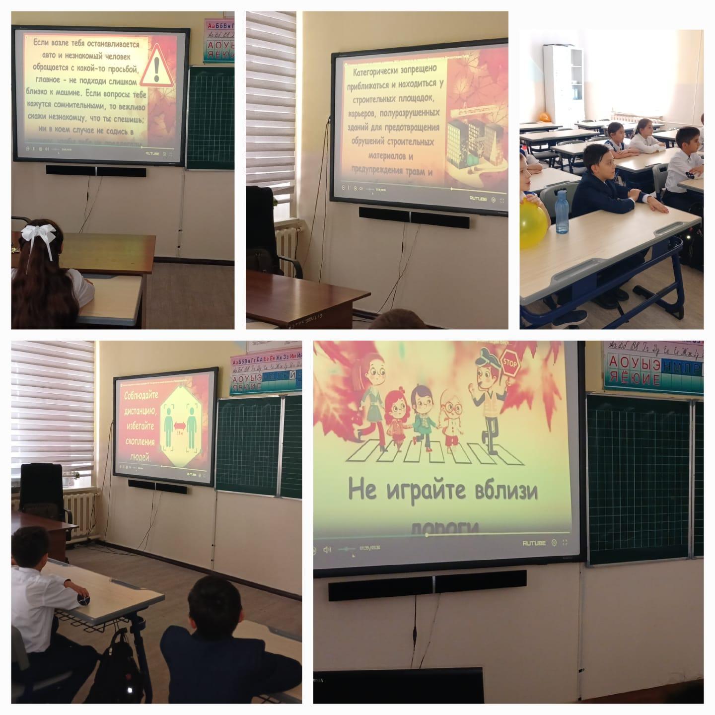 «Күзгі демалыс кезінде жол қозғалысы ережелерін сақтау туралы» әдістемелік әңгіме барысында балалар қала көшелерінде, жолда және көлікте өзін-өзі ұстау ережелерін, бағдаршам, жол белгілері, көліктегі өзін-өзі ұстау ережелерін еске түсірді. Ситуациялық әңгімелер өткізілді, онда балалар жол қозғалысы қауіпсіздігі және қауіпті жағдайға тап болмау туралы көбірек білді. Сынып сағатында оқушылардың өрттің шығу себептері туралы өрт кезінде өзін-өзі ұстау ережелері туралы білімдерін бекіту жұмыстары жүргізілді, жағдаяттық әңгімелер өткізілді, онда балалар өрт кезіндегі қауіпсіздік туралы көбірек білді.