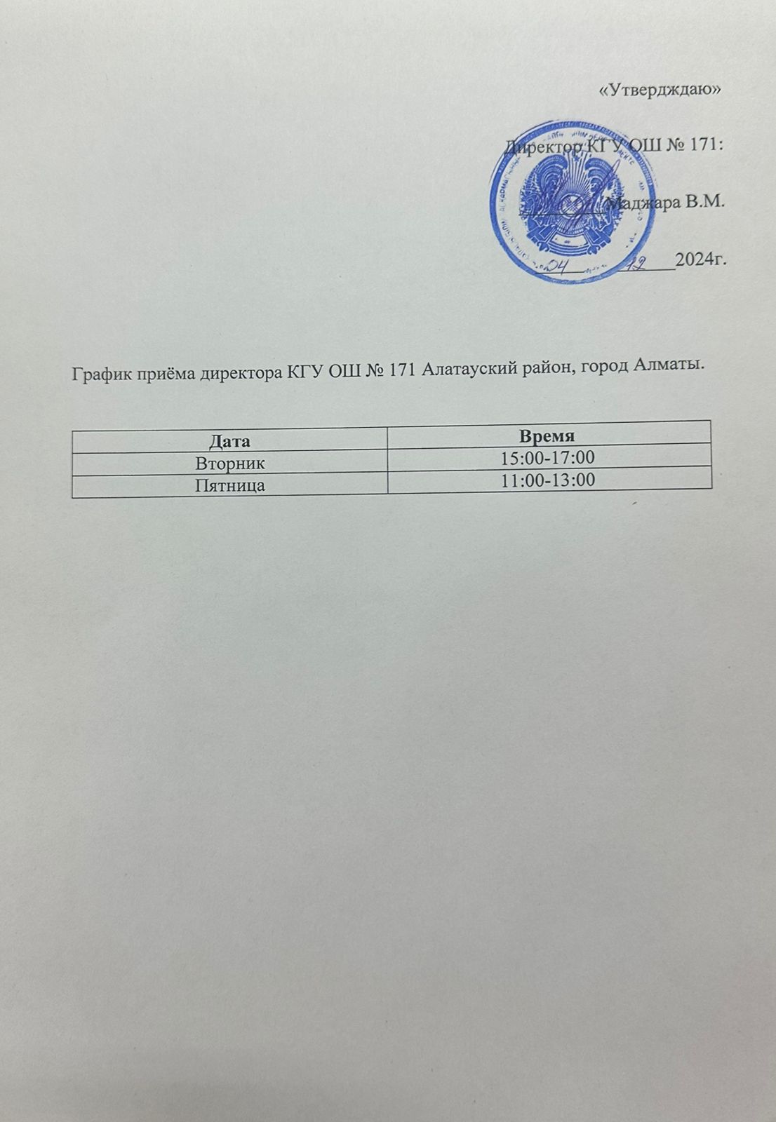График приема директора