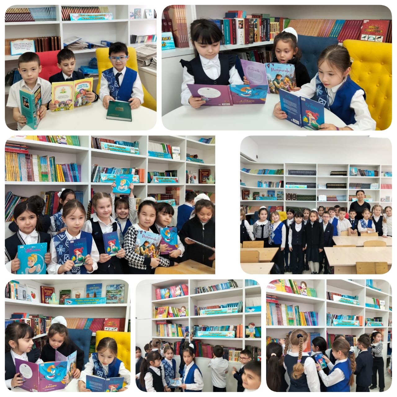 1 сынып оқушылары кітапханаға саяхатқа келді. Кітапханашы оқушыларды кітапхана туралы, балалар әдебиеті бөлімі, кітап қоры туралы мәлімет берді «Кітаппен бірге өсеміз», «»Ертегілер әлемі, «Балаларға базарлық» атты кітап көрмелерімен таныстырды.Оқушыларға қазақ, орыс, шетел шығармалары, балаларға арналған энциклопедиялар, ертегі кітаптар тізімін ұсынды.