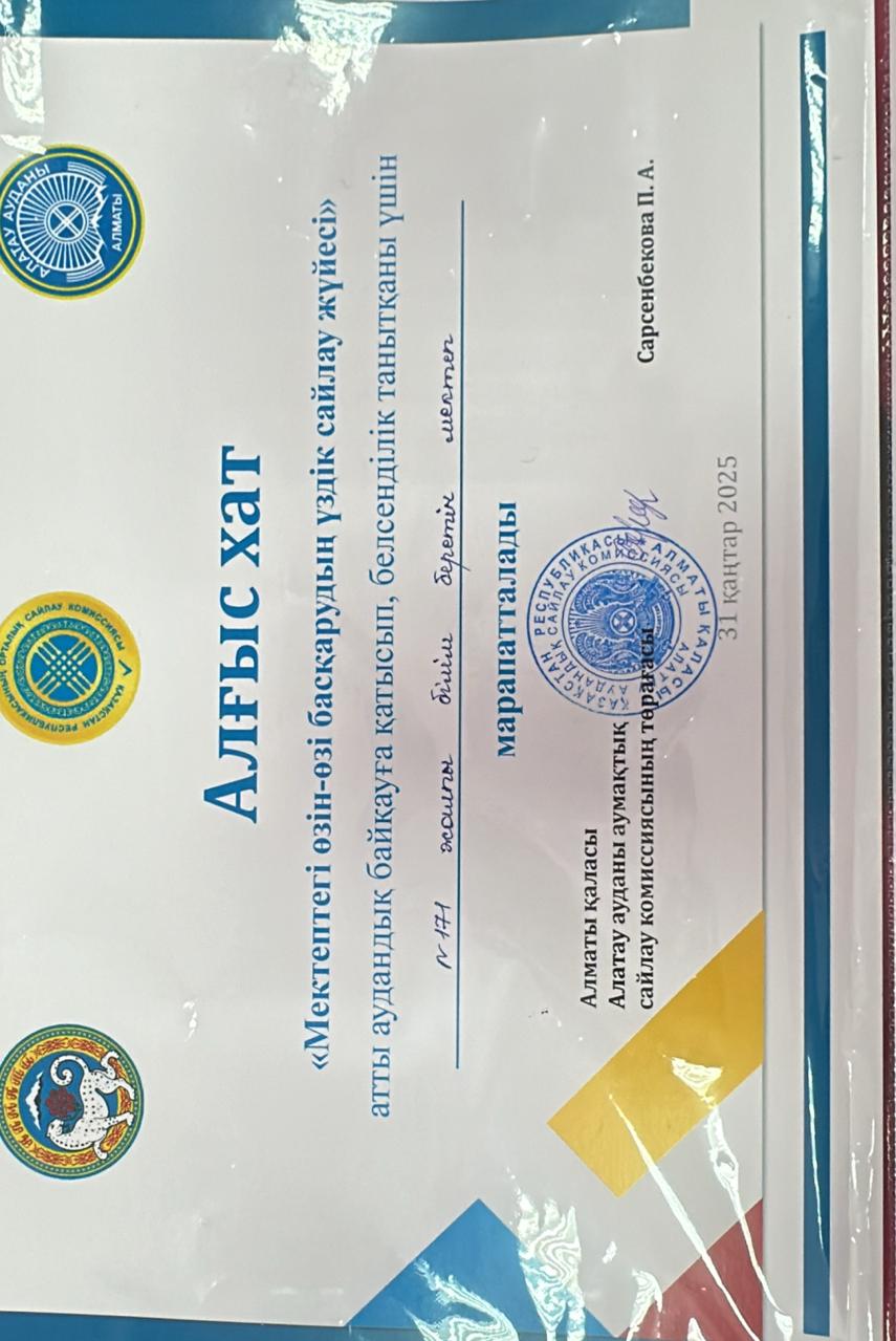 31 январь 2025 0 1 2 3 4 5 Аудандық "Мектептің өзін-өзі басқарудың үздңк сайлау жүйесі" байқауы Аудандық "Мектептің өзін-өзі басқарудың үздңк сайлау жүйесі" байқауына қатысып,белсенділік танытқаны үшін №171-мектеп Парламенті марапатталды. Осы беттің QR-коды:QR-код этой страницы: