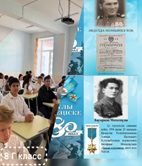 Сынып сағаты барысында оқушылар майданда және тылда ерлік көрсеткен қазақстандықтар туралы мағлұмат алды. Сонымен қатар, соғыстың ауыр жылдарында көмек күтпей, белсенді әрекет еткен адамдардың ерлігі туралы айтылды.