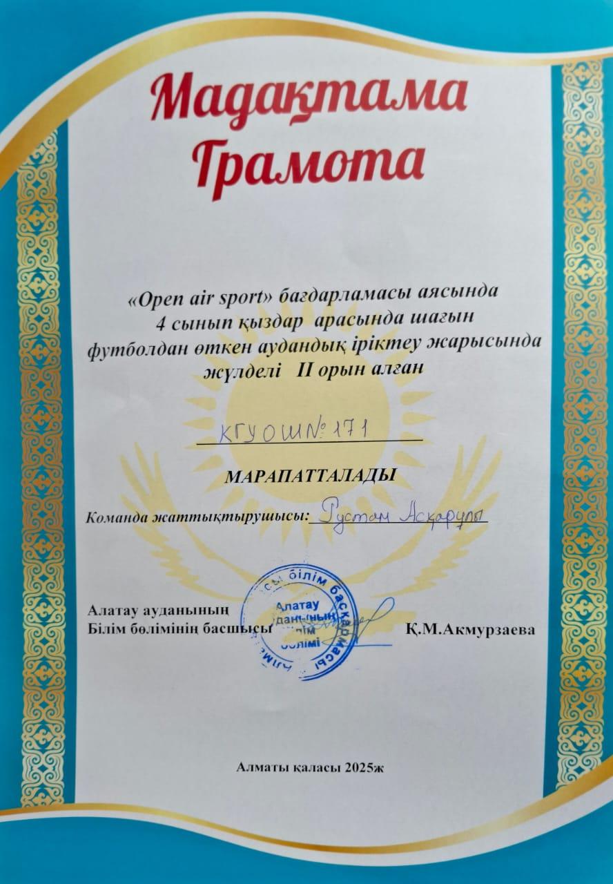 16 май 2025 0 1 2 3 4 5 "Open air sport" бағдарламасы аясында аудандық жарыста жүлделі 2 орынды иеленді "Open air sport" бағдарламасы аясында 4 сынып қыздар арасында шағын футболдан өткен аудандық жарыста жүлделі 2 орынды №171 ЖББМ командасы иеленді. Осы беттің QR-коды:QR-код этой страницы: