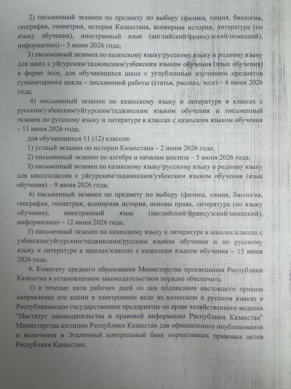 2025–2026 оқу жылының басталу және аяқталу мерзімдерін, сондай-ақ білім беру ұйымдарында оқушыларды қорытынды аттестаттаудан өткізу мерзімдерін айқындау туралы.