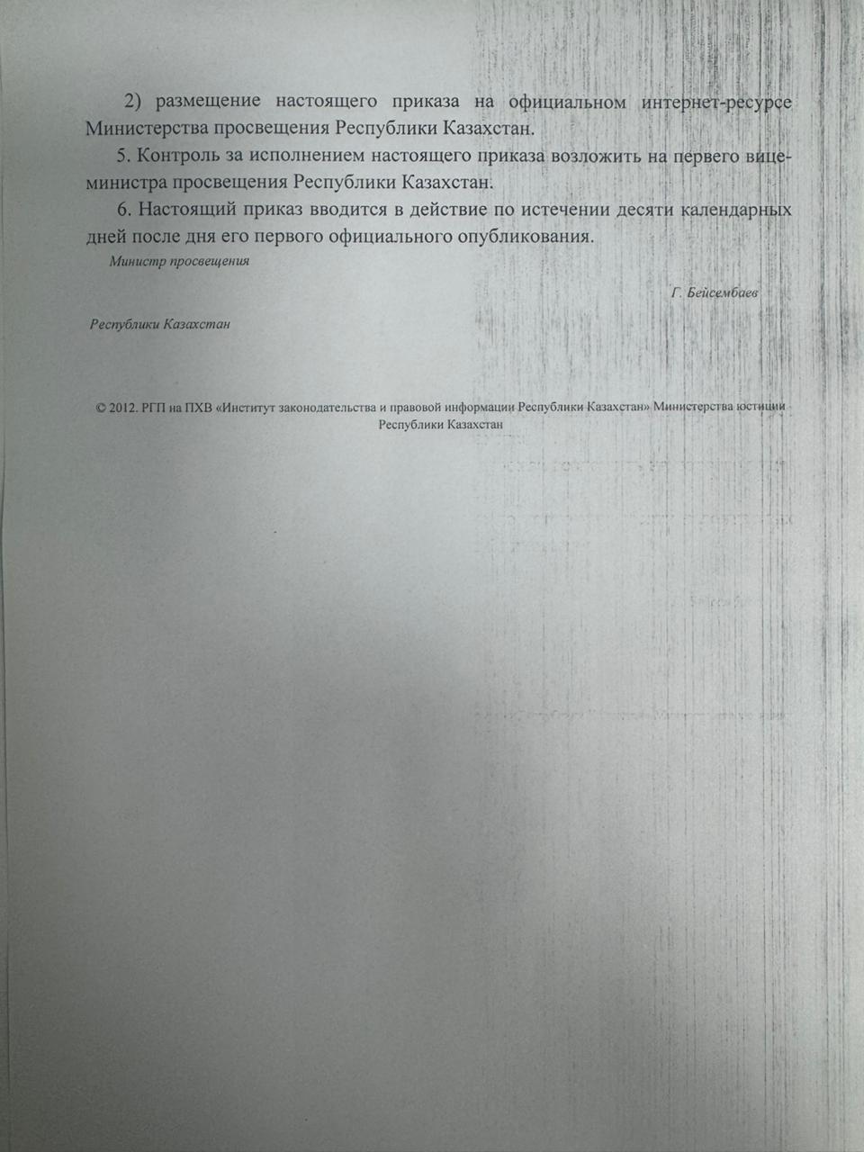 Приказ Министра просвещения Республики Казахстан от 5 августа 2025 года № 174