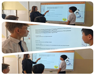 В ходе занятия учащиеся познакомились с основами правового воспитания, узнали о своих правах, закреплённых в международных и национальных правовых актах, а также обсудили обязанности, которые несут как несовершеннолетние граждане.