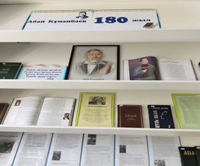 В библиотеке прошла тематическая книжная выставка, приуроченная к 180-летнему юбилею великого казахского поэта, философа, композитора и просветителя — Абая Кунанбаева.