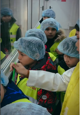 Экскурсия барысында балалар зауыттың жұмыс барысымен, өндірістік үдерістермен және заманауи технологиялардың сапа мен тазалықты қамтамасыз етудегі рөлімен танысты. Зауыт қызметкерлері өз мамандықтары туралы әңгімелеп, еңбек жағдайлары мен жұмыстың маңыздылығын түсіндірді.