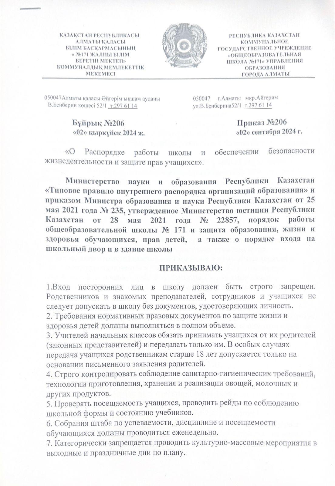02 сентябрь 2024 0 1 2 3 4 5 Мектептің жұмыс тәртібі және өмір қауіпсіздігін қамтамасыз ету және оқушылардың құқықтарын қорғау туралы бұйрық. Осы беттің QR-коды:QR-код этой страницы: