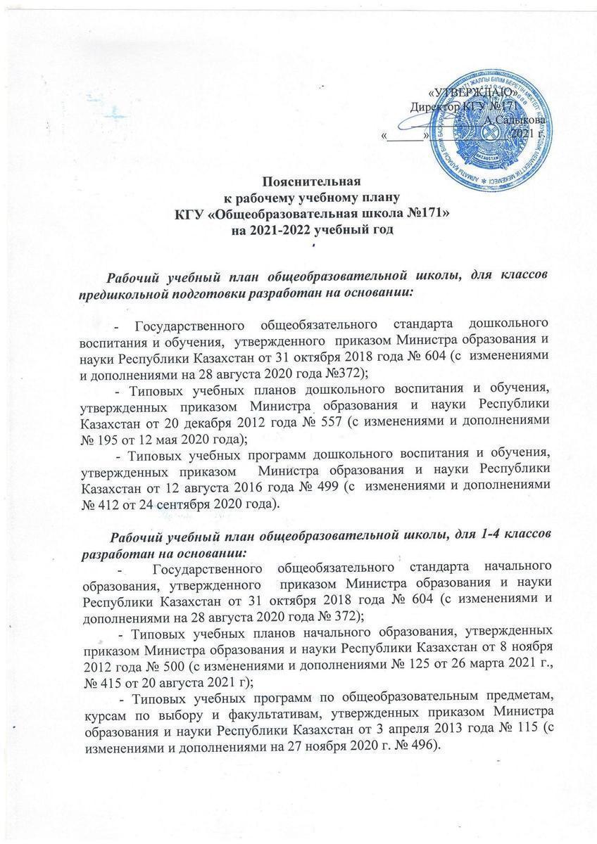 20 сентябрь 2021 0 1 2 3 4 5 Учебный план КГУ ОШ №171 на 2021-2022 учебный год Осы беттің QR-коды:QR-код этой страницы: