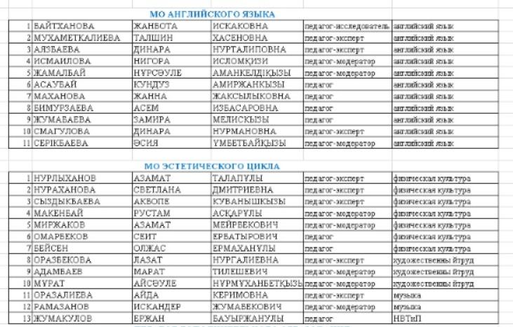Мұғалімдер 2025-2026 оқу жылы