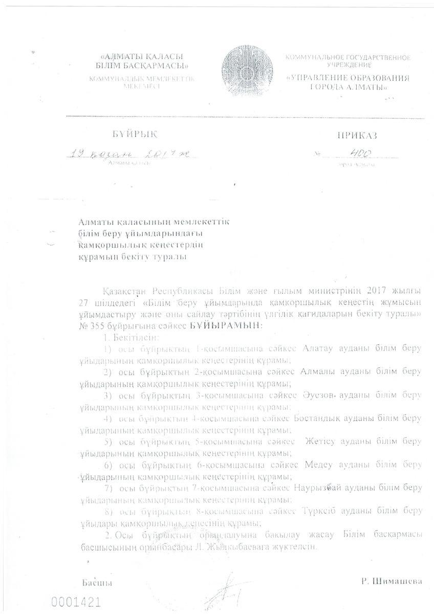 01 сентябрь 2021 0 1 2 3 4 5 Қамқоршылық кеңестің құрамын бекіту туралы БҰЙРЫҚ Осы беттің QR-коды:QR-код этой страницы: