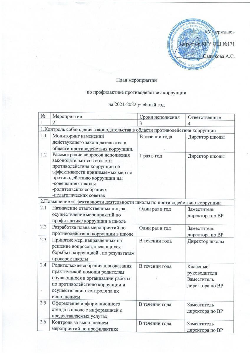 01 сентябрь 2021 0 1 2 3 4 5 План мероприятий по профилактике противодействия коррупции на 2021-2022 уч.год Осы беттің QR-коды:QR-код этой страницы:
