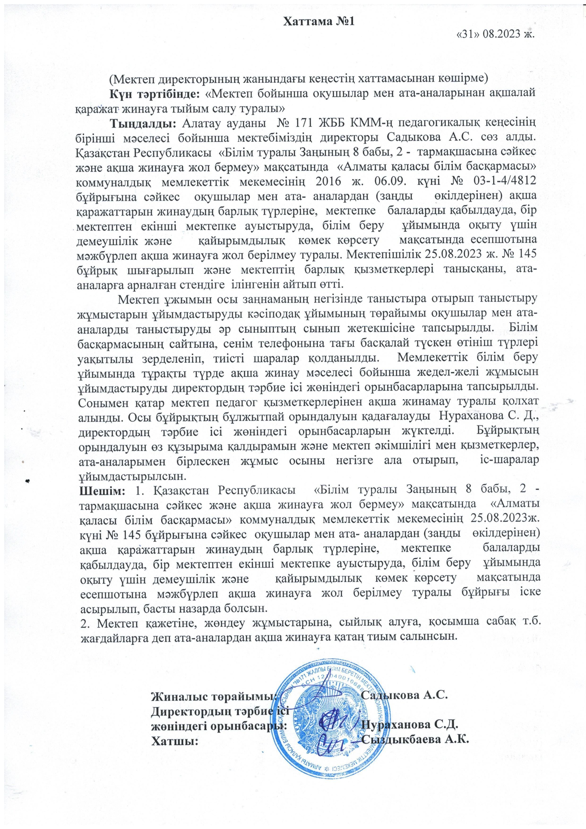 31 август 2023 0 1 2 3 4 5 №171 ЖББМ мектебінде өткен жиналыс хаттамасы №1 Осы беттің QR-коды:QR-код этой страницы: