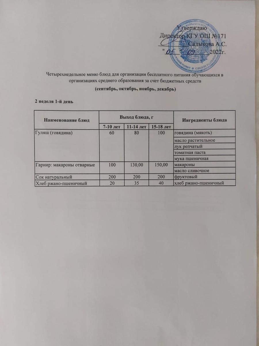 05 сентябрь 2022 0 1 2 3 4 5 Тағамдар мәзірі. 2 апта 1 күн (05.09.2022). Меню блюд. 2 неделя 1 день (05.09.2022) Осы беттің QR-коды:QR-код этой страницы: