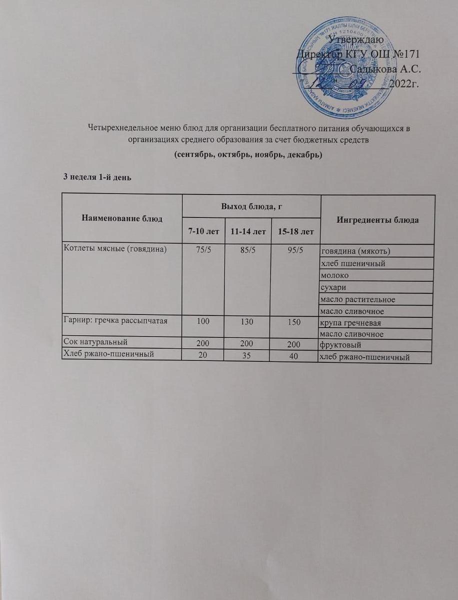 12 сентябрь 2022 0 1 2 3 4 5 Тағамдар мәзірі. 3 апта 1 күн (12.09.2022). Меню блюд. 3 неделя 1 день (12.09.2022) Осы беттің QR-коды:QR-код этой страницы: