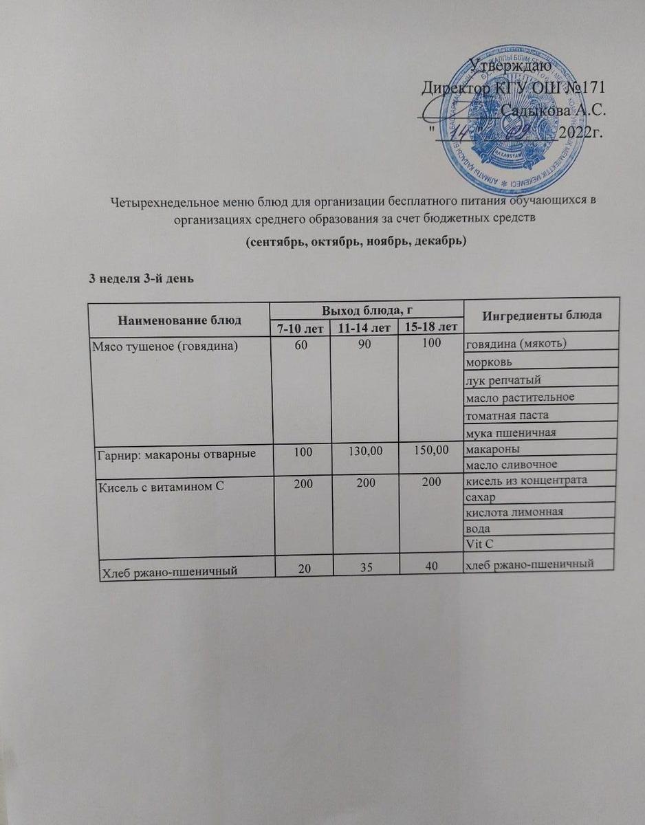 14 сентябрь 2022 0 1 2 3 4 5 Тағамдар мәзірі. 3 апта 3 күн (14.09.2022). Меню блюд. 3 неделя 3 день (14.09.2022) Осы беттің QR-коды:QR-код этой страницы: