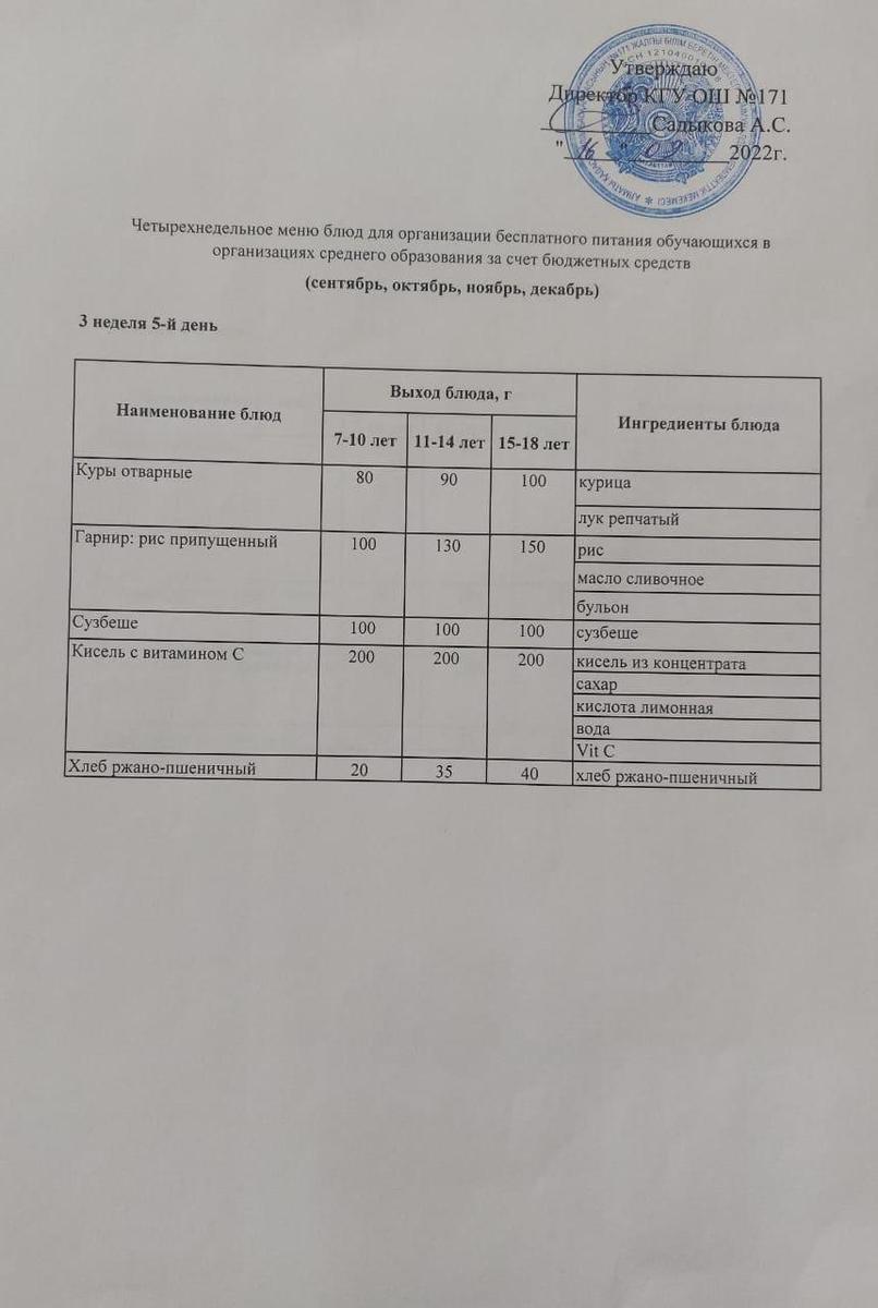 16 сентябрь 2022 0 1 2 3 4 5 Тағамдар мәзірі. 3 апта 5 күн (16.09.2022). Меню блюд. 3 неделя 5 день (16.09.2022) Осы беттің QR-коды:QR-код этой страницы: